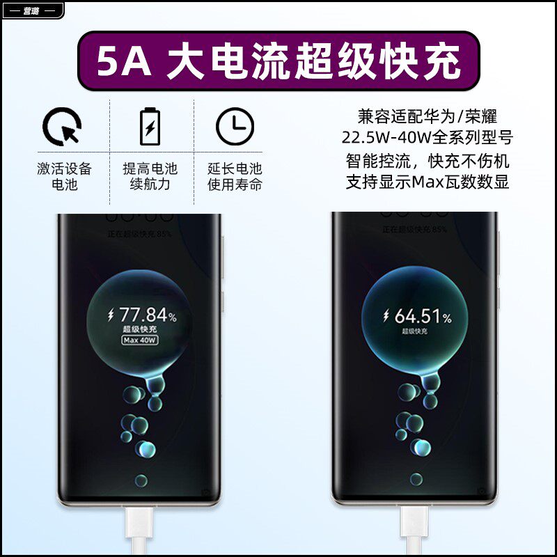📚 营璐Type-c数据线适用华为40W瓦mate30充电器线5A超级快充p40p20p30pro荣耀v20手机30闪充nova7/6安卓加长