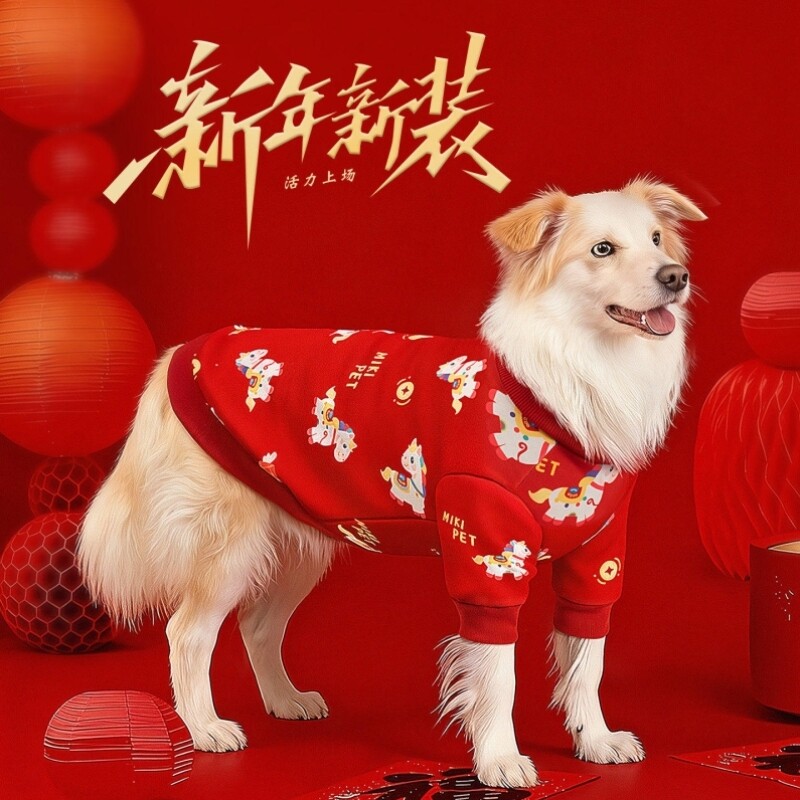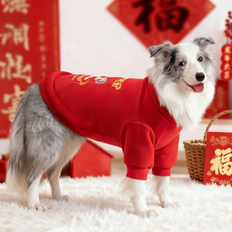 📚 大狗狗衣服新年喜庆新款秋冬装过年中大型犬边牧金毛宠物保暖卫衣