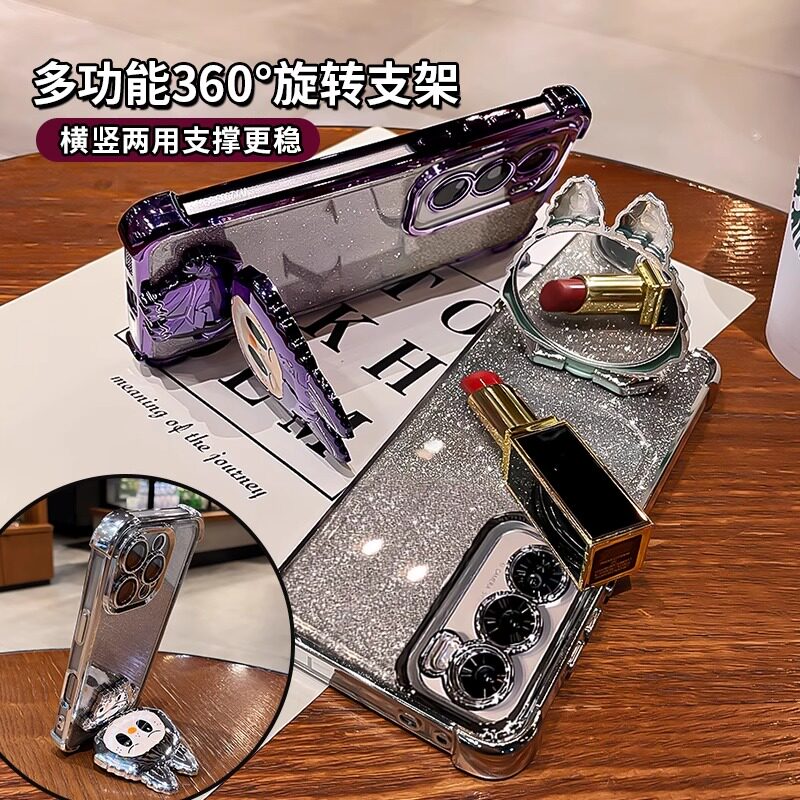 📚 闪粉气囊适用opporeno14手机壳新款reno13Pro全包防摔12带镜头膜reno11硅胶高级感10可爱9镜子支架8小众女7套