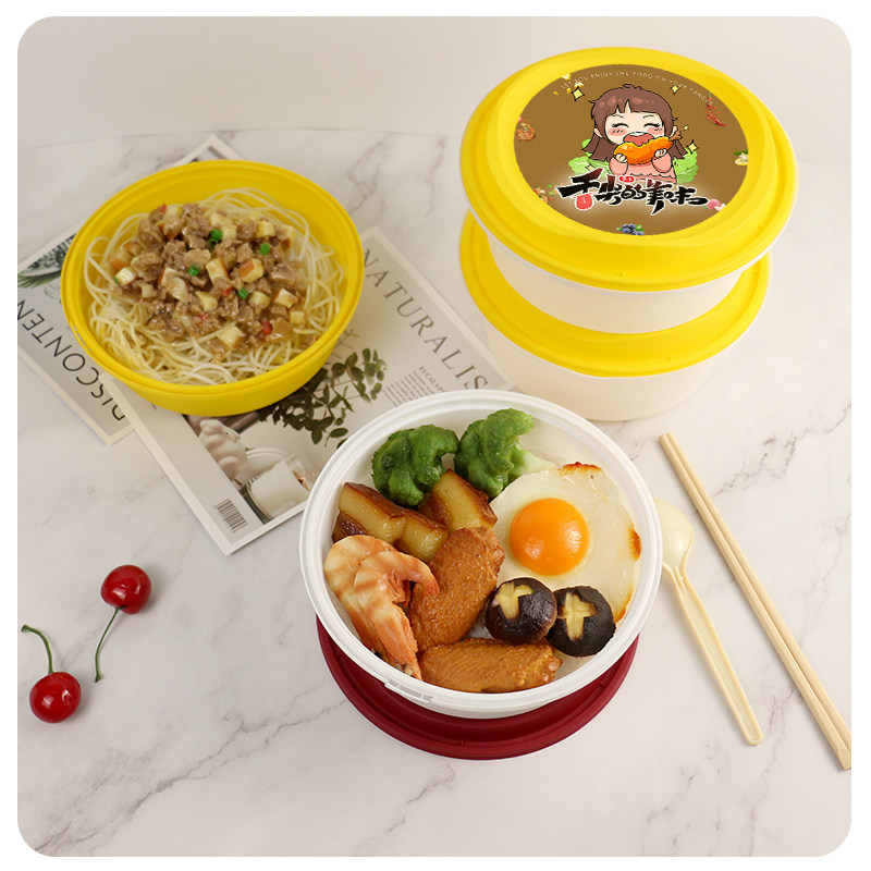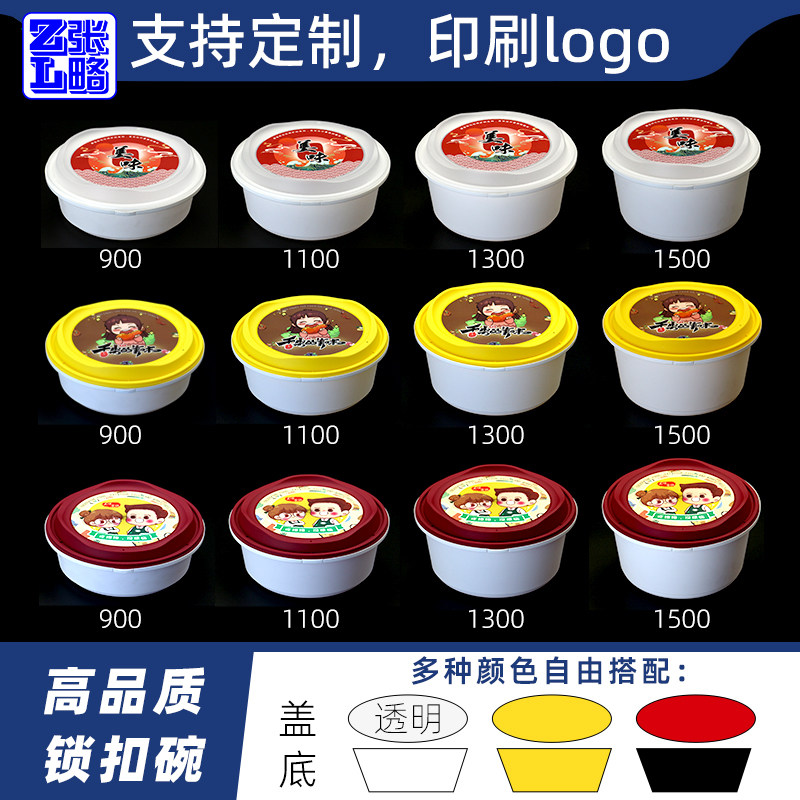 📚 一次性餐盒加厚防盗锁扣带盖圆形打包盒外卖定制logo高档防漏饭盒