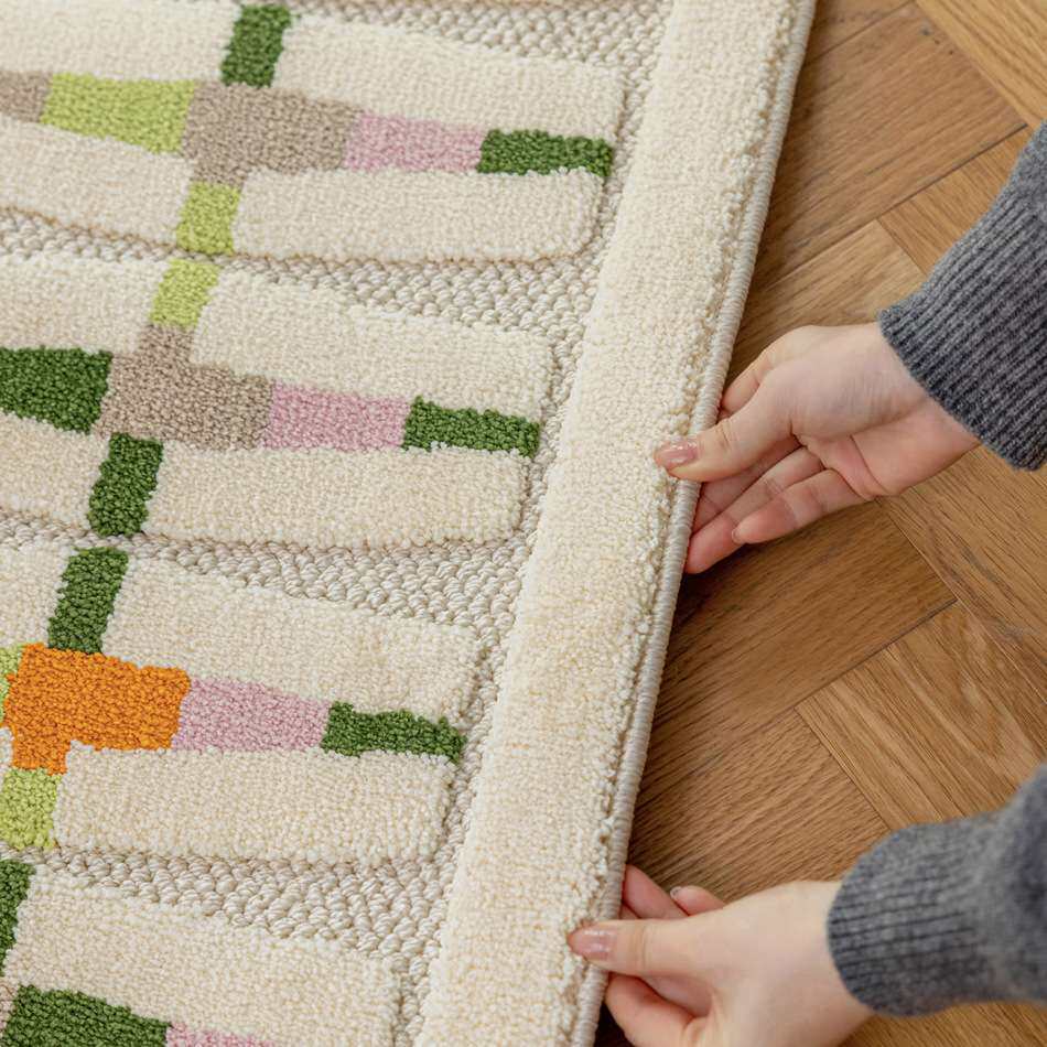 📚 蝶绣工艺彩虹色手工浮雕硅藻丝防水客厅地毯沙发茶几垫儿童床头毯