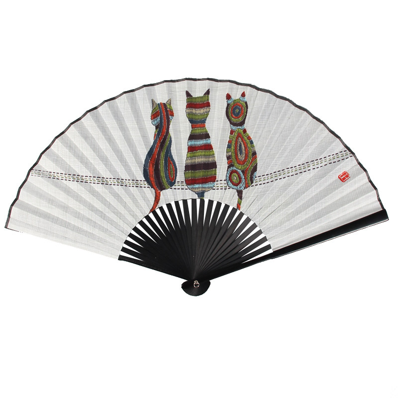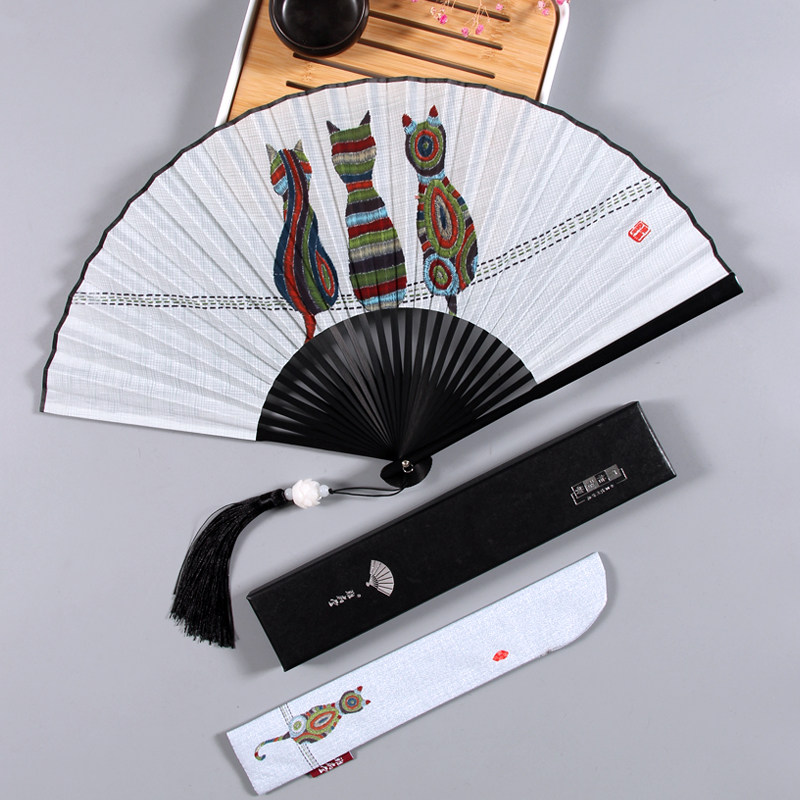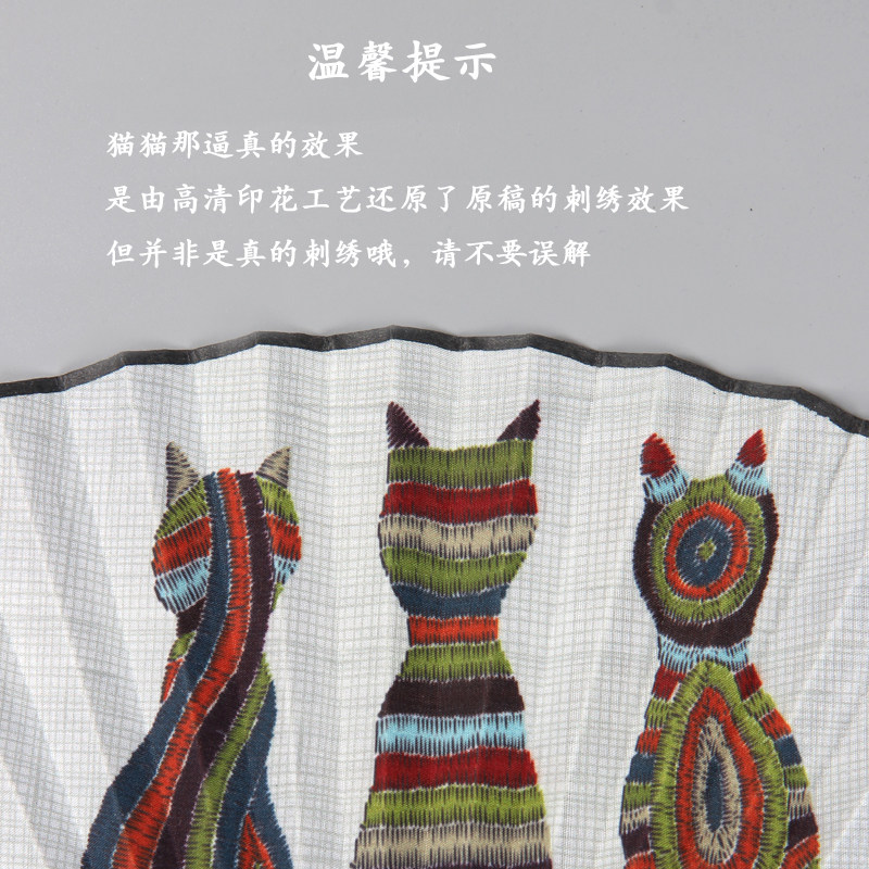 📚 8寸夏季猫扇中国风布面折扇男古风汉服转扇儿童折叠扇女式小扇子
