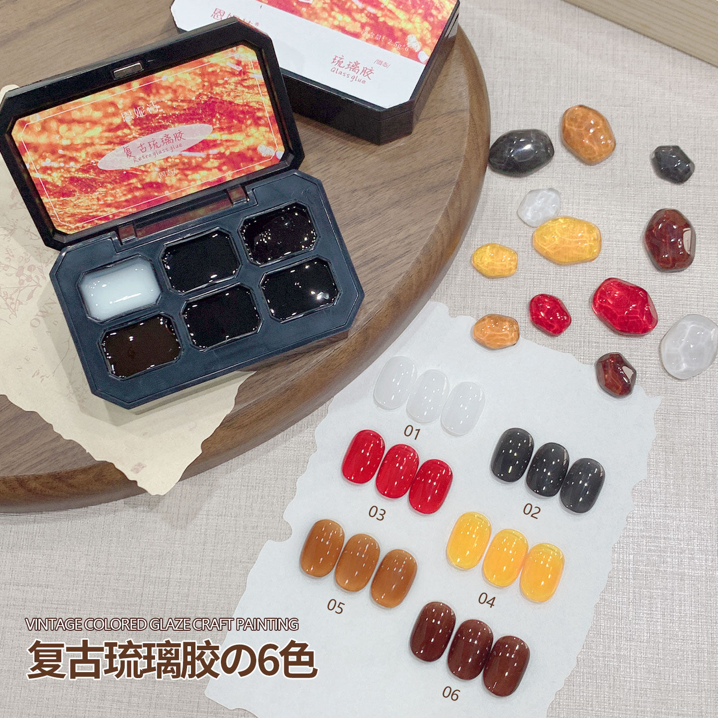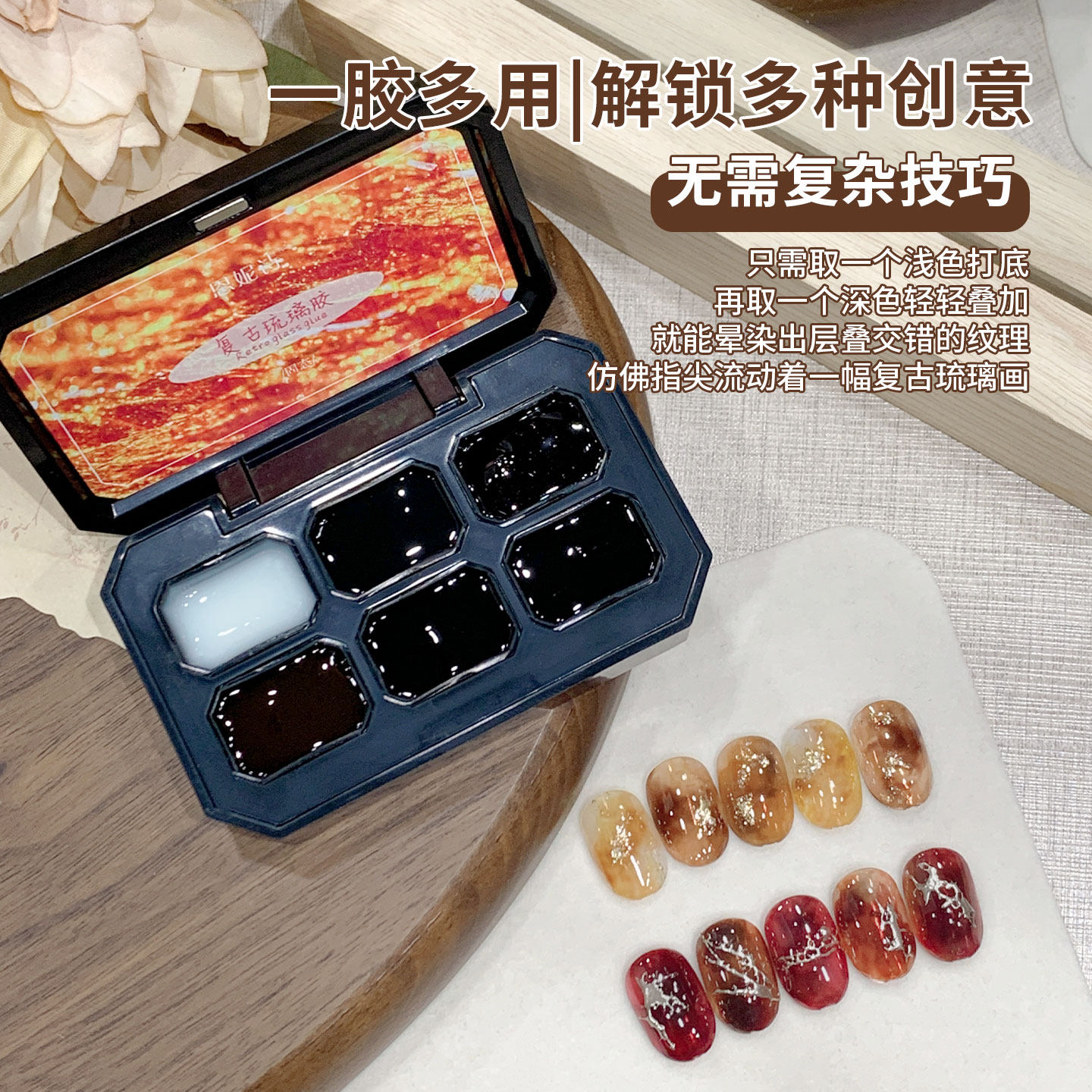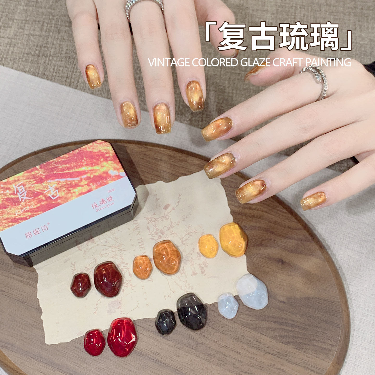 📚 恩妮诗春夏复古琉璃胶六宫格固态彩绘渐变多功能甲油胶美甲店专用