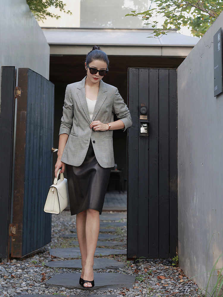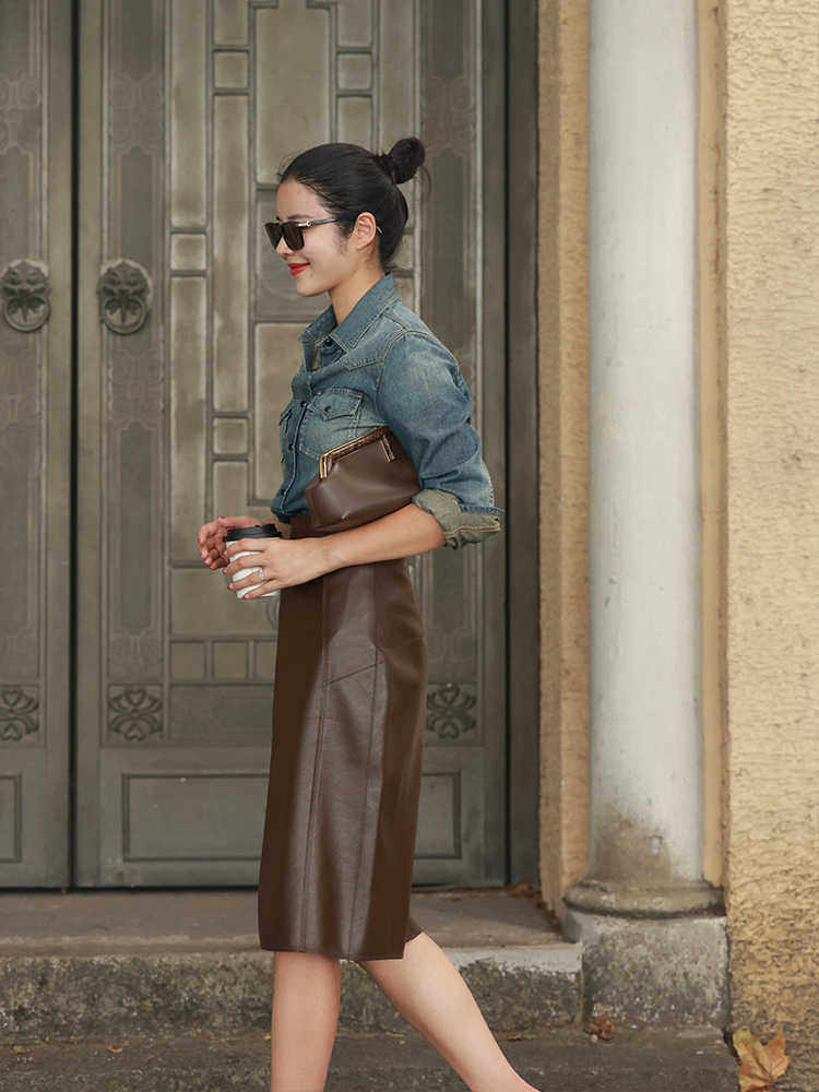 📚 欧洲站绵羊皮皮裙真皮皮裙简约时尚通勤显瘦A字半身中长包臀裙