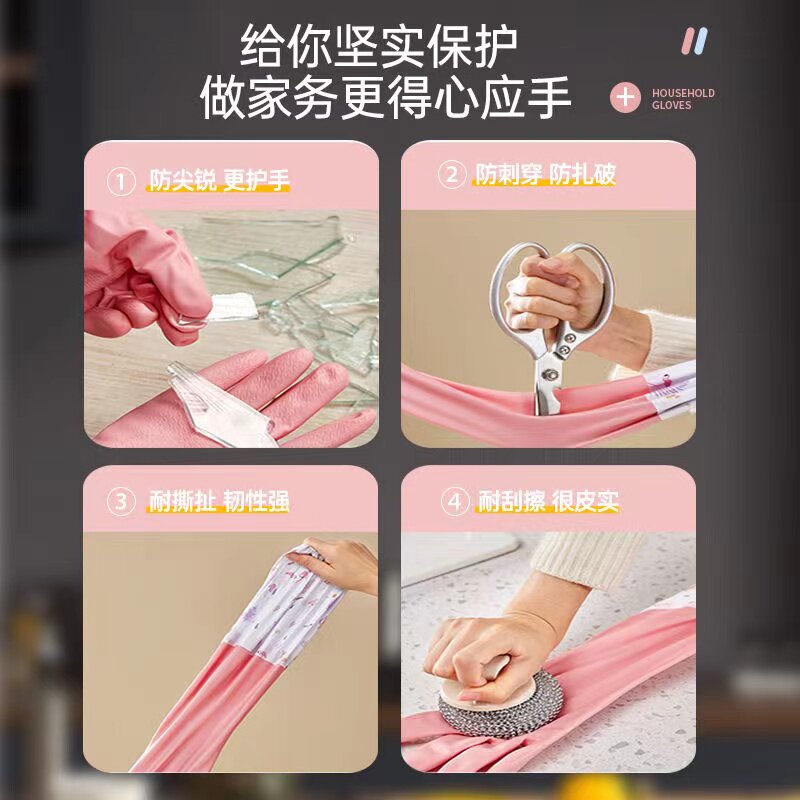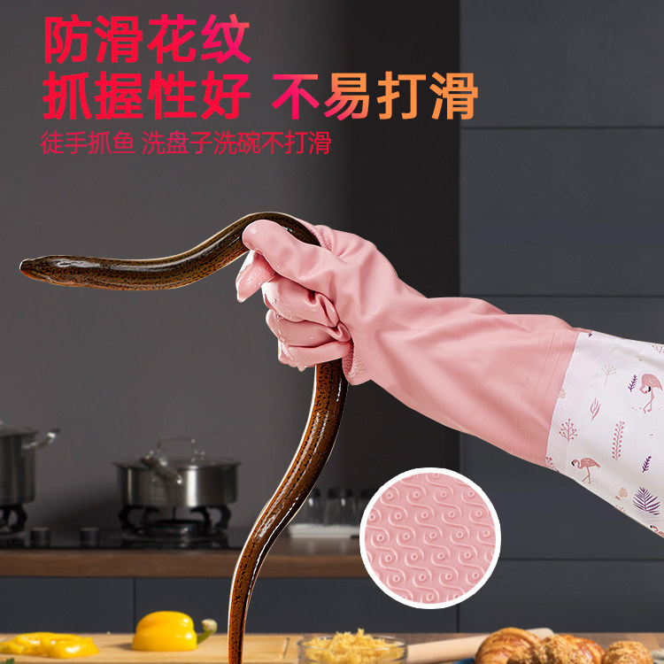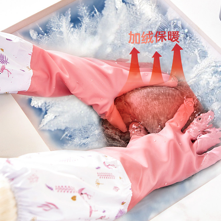 📚 洗碗手套加绒女厨房耐用型加厚加长防水橡胶皮家务刷碗洗衣服秋冬