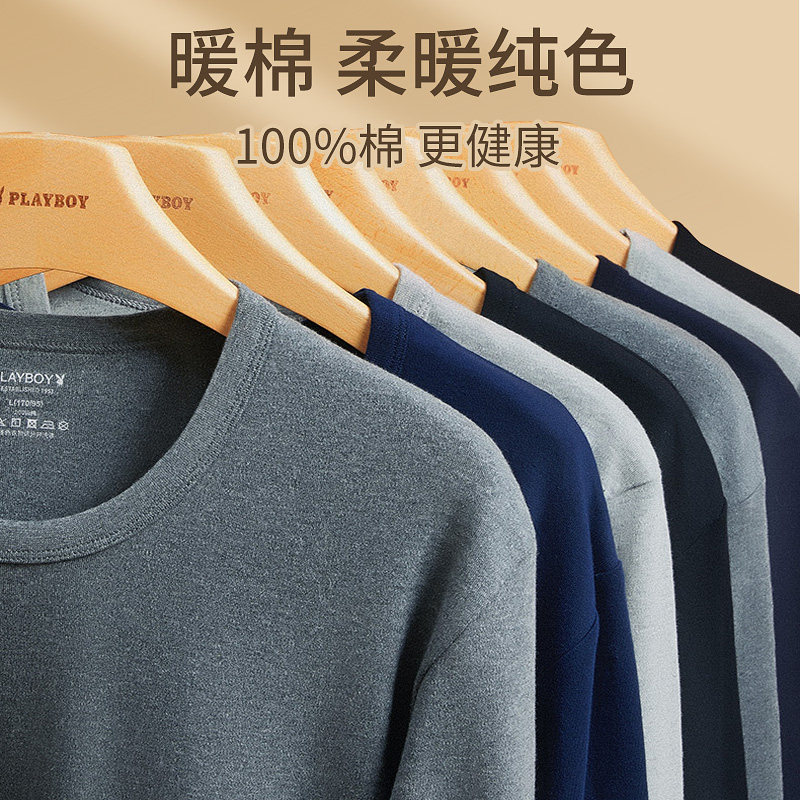 📚 花花公子秋衣秋裤套装男保暖内衣纯棉全棉线衣线裤青年衬衣衬裤DX