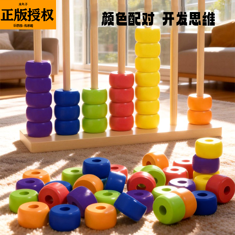 📚 【益智多彩串珠对对碰】早教形状配对儿童计算架积木益智玩具