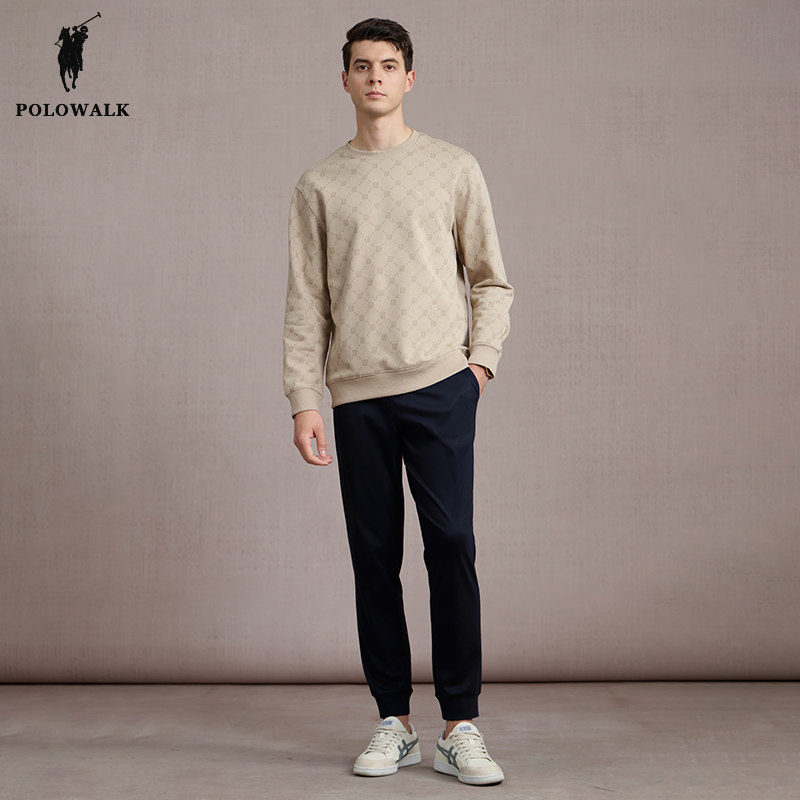 📚 POLOWALK男士卫裤春季新款宽松显瘦藏青束脚运动裤100%棉长裤子