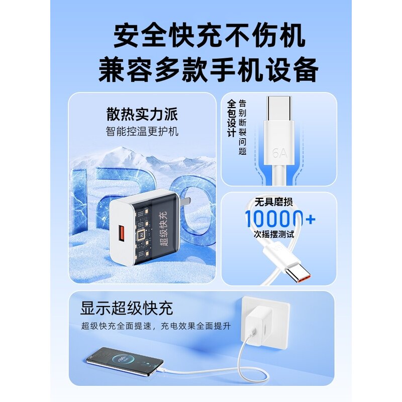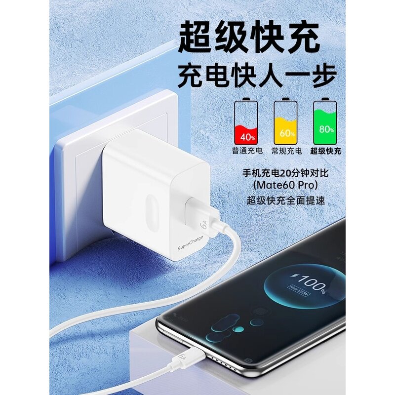 📚 优茁120w超级快充适用mate60 p50 nova12 8荣耀90华p30p40pro畅享70为手机W充电器闪充插头原66/100数据线套