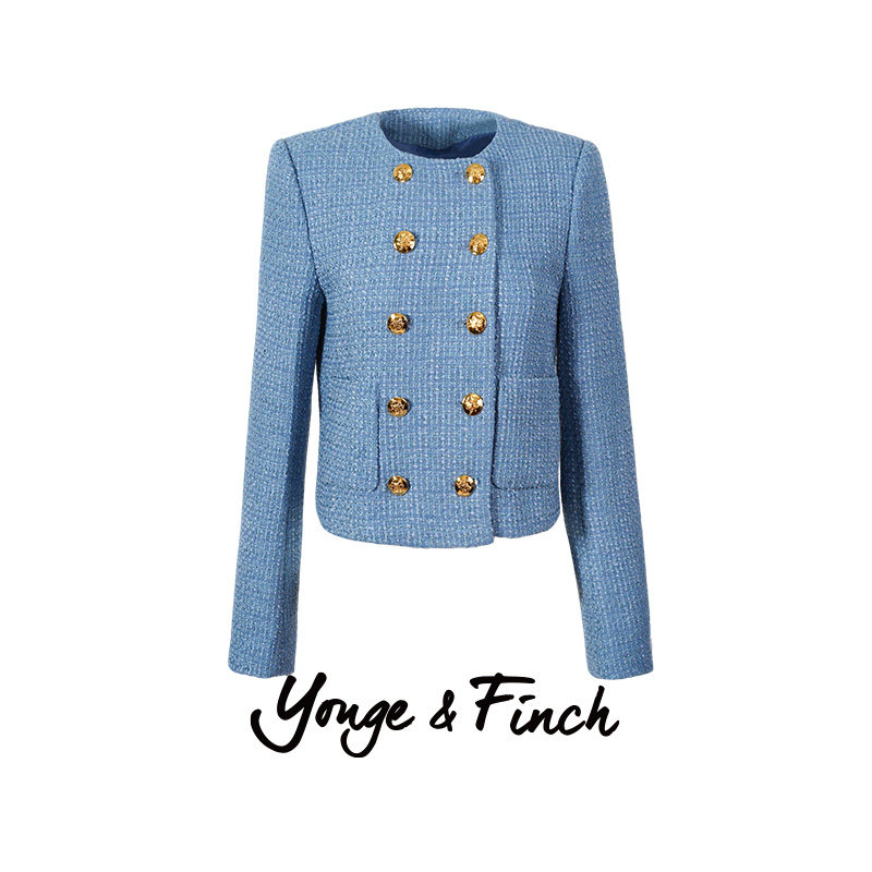 📚 YongeFinch扬芬缇2026小香风蓝色羊毛短双排扣夹克外套上衣CINDY