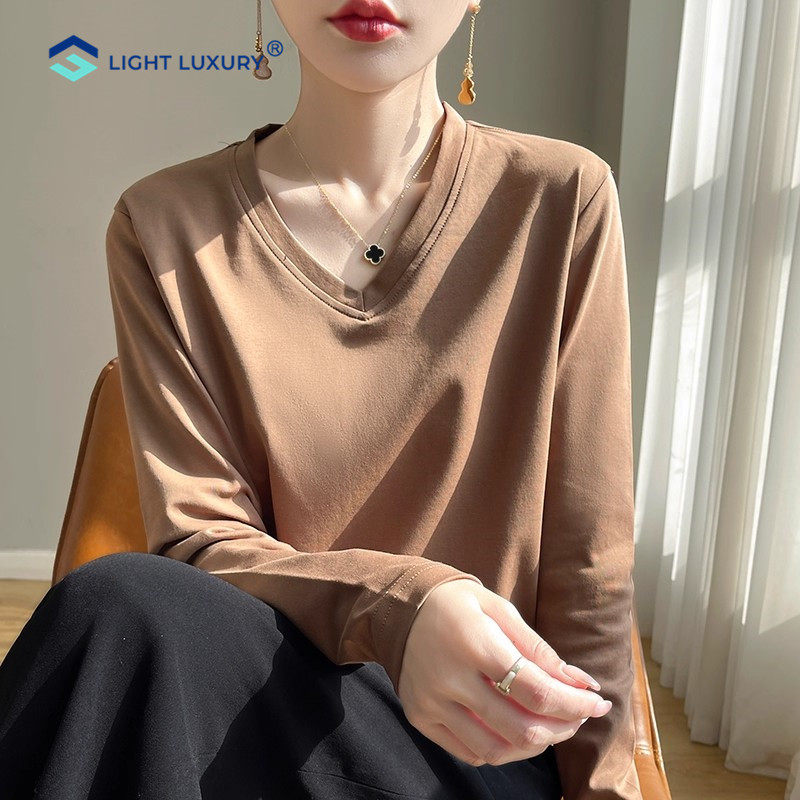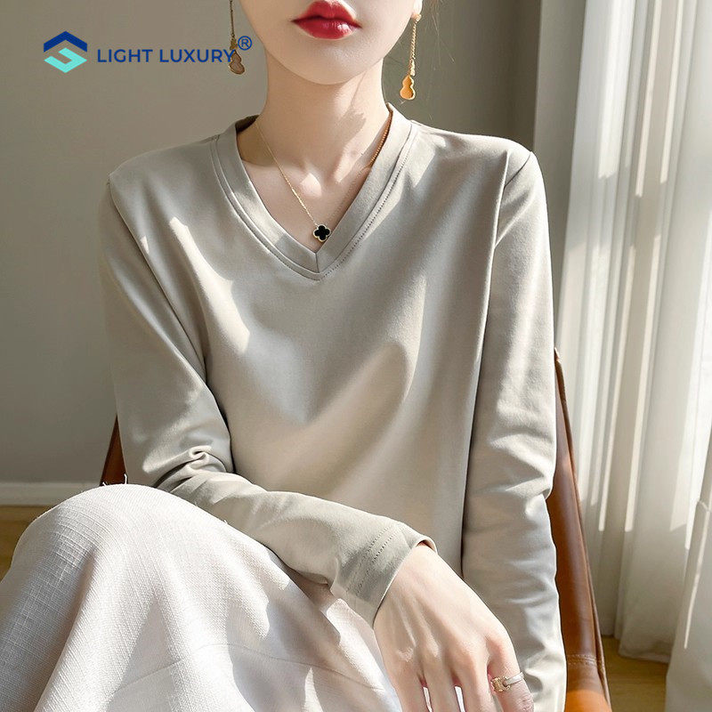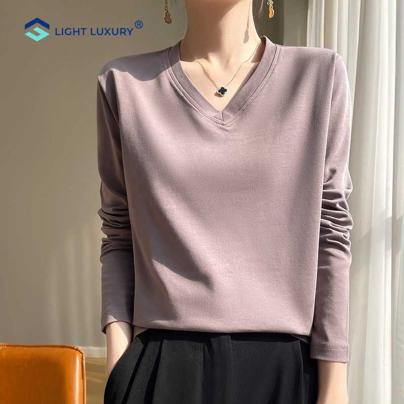 📚 打底衫女内搭2025秋冬新款灰色棉质长袖T恤修身显瘦百搭正肩上衣