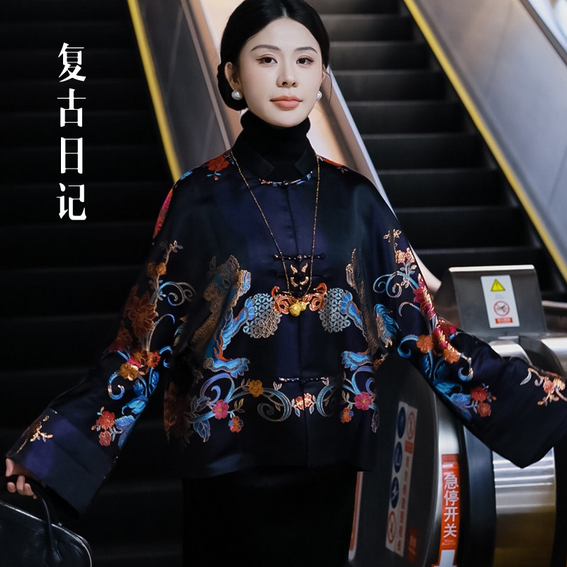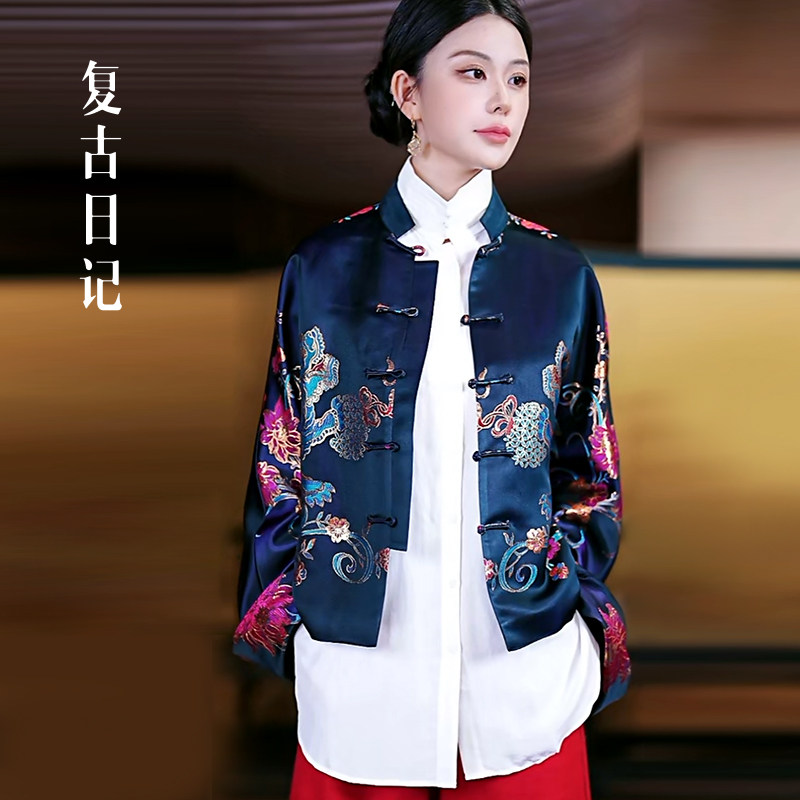 📚 复古日记“锦上添花”桑蚕丝老缎重工高定外套25DW2214