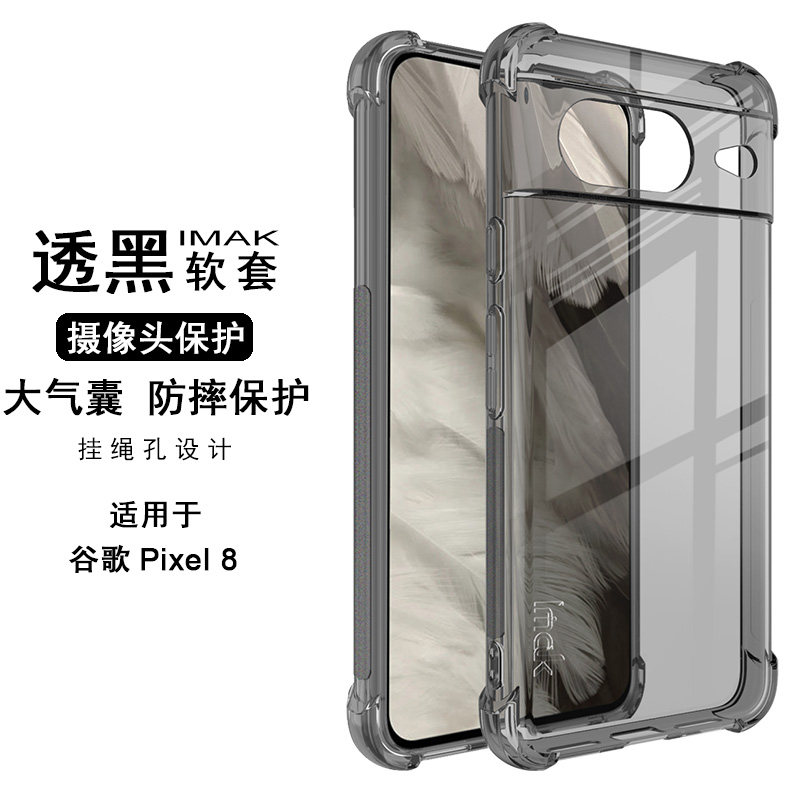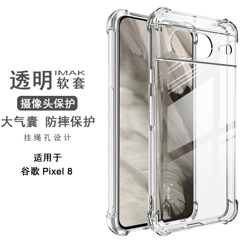 📚 imak适用于谷歌Google Pixel 8四角气囊手机壳全包防摔透明pixel8 pro保护套男女新款防滑边清水硅胶软壳