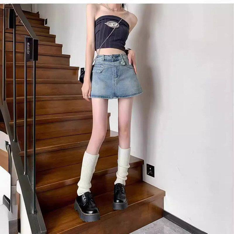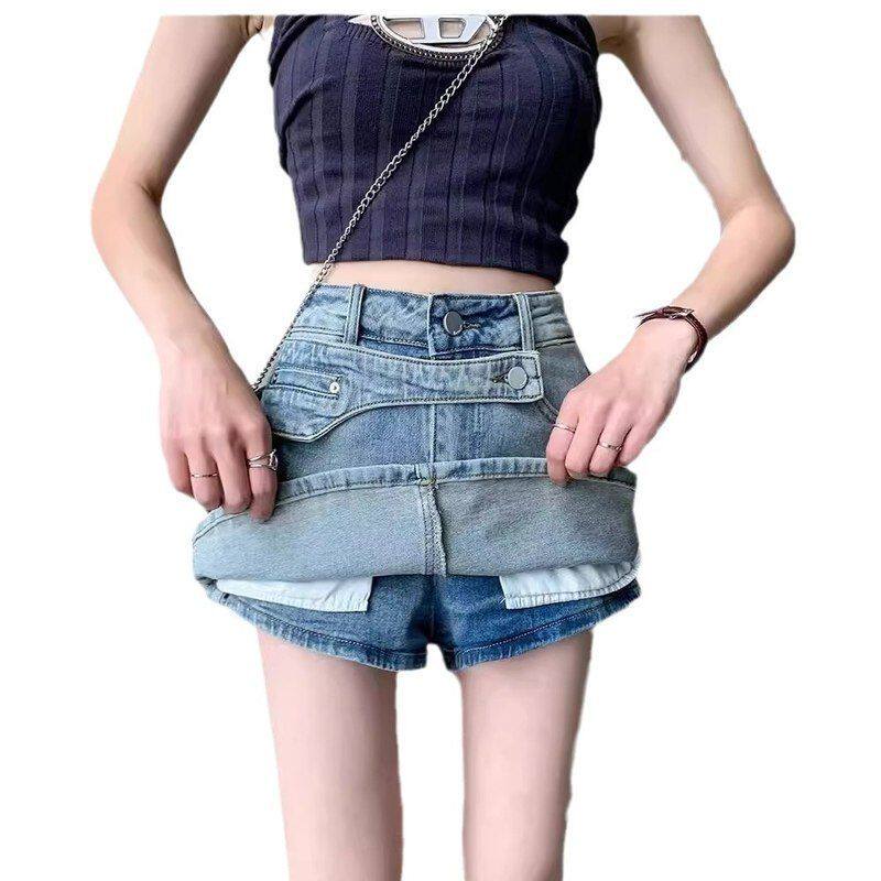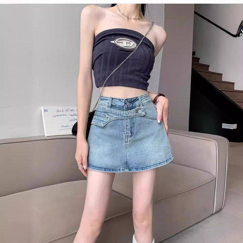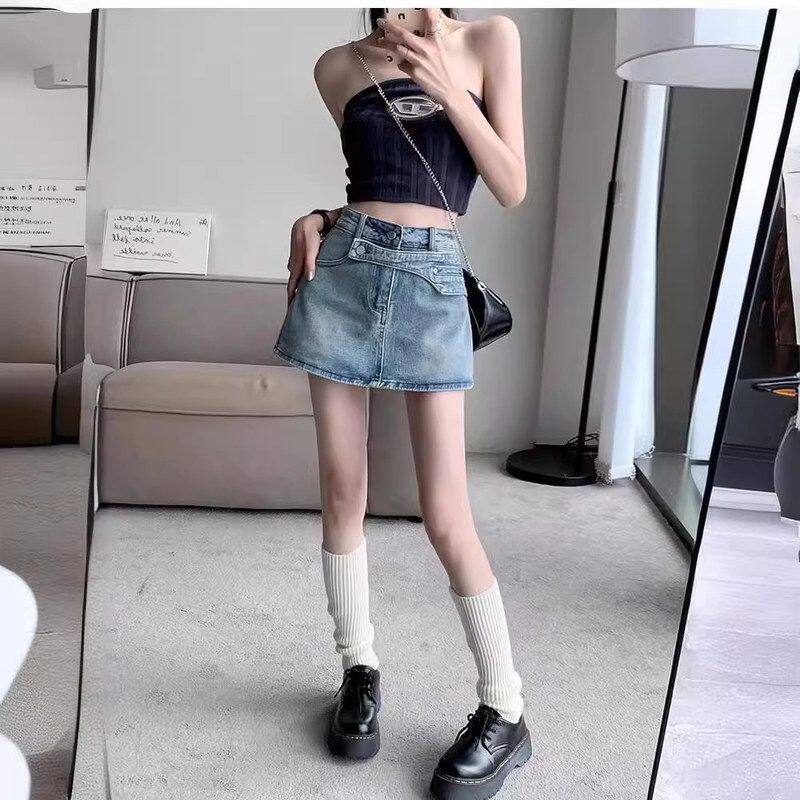 📚 2024年新款性感辣妹高腰显瘦包臀A字裙裤设计感牛仔短裙女春夏季
