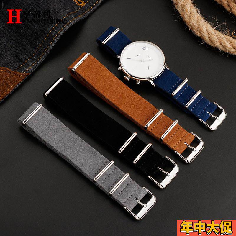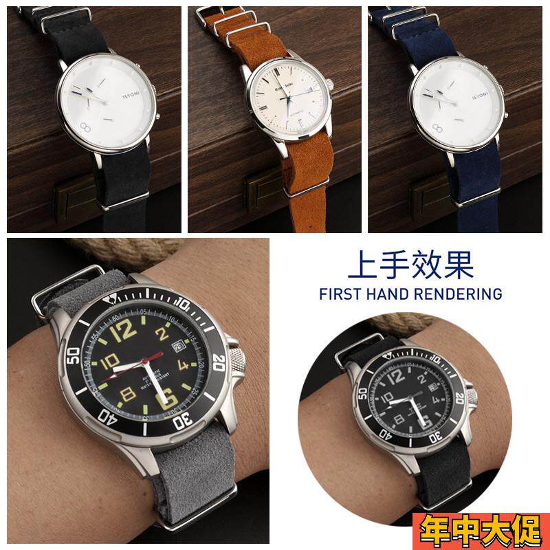 📚 适配原装磨砂真皮牛皮复古nato一体式手表带精工天美时DW薄腕表带