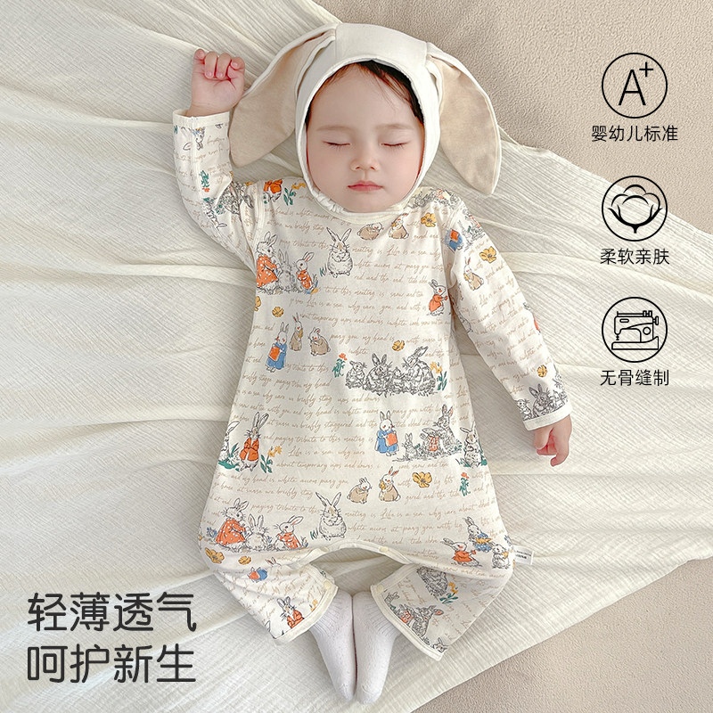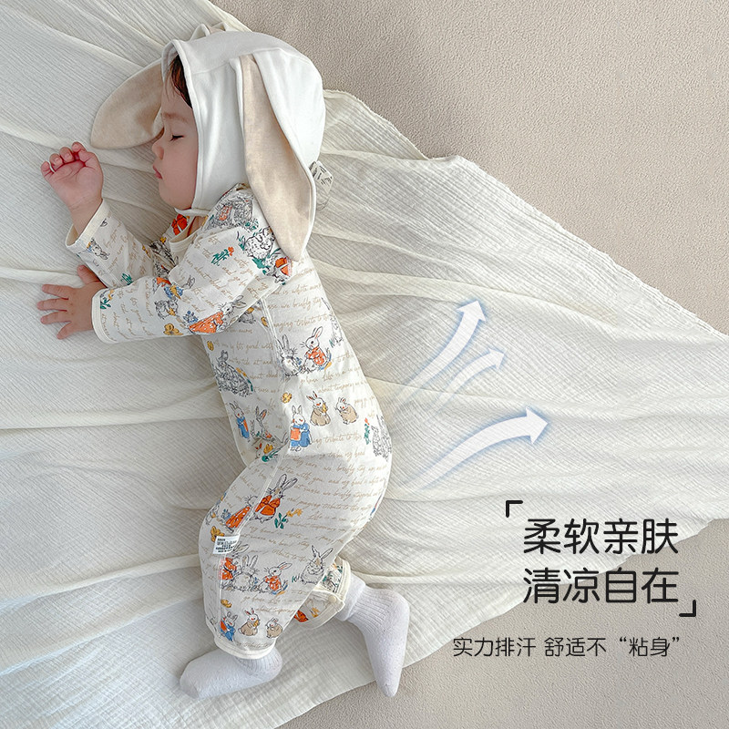 📚 婴儿衣服夏季薄款A类纯棉无骨长袖睡衣宝宝连体衣空调服外出哈衣