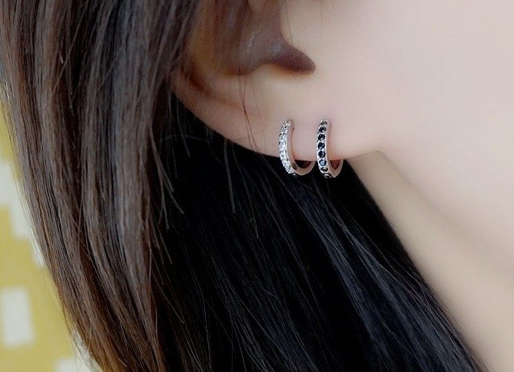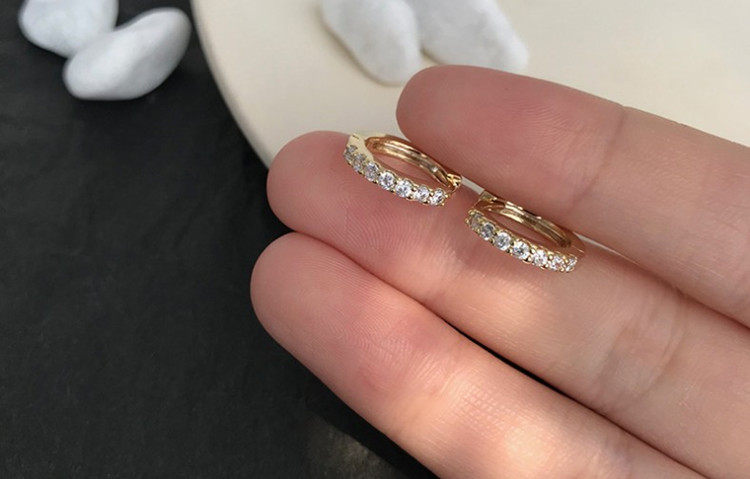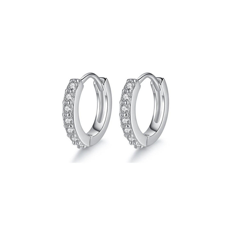 📚 S925纯银耳针款闪钻耳环简约圆圈耳扣气质潮 女 个性耳圈小巧耳环