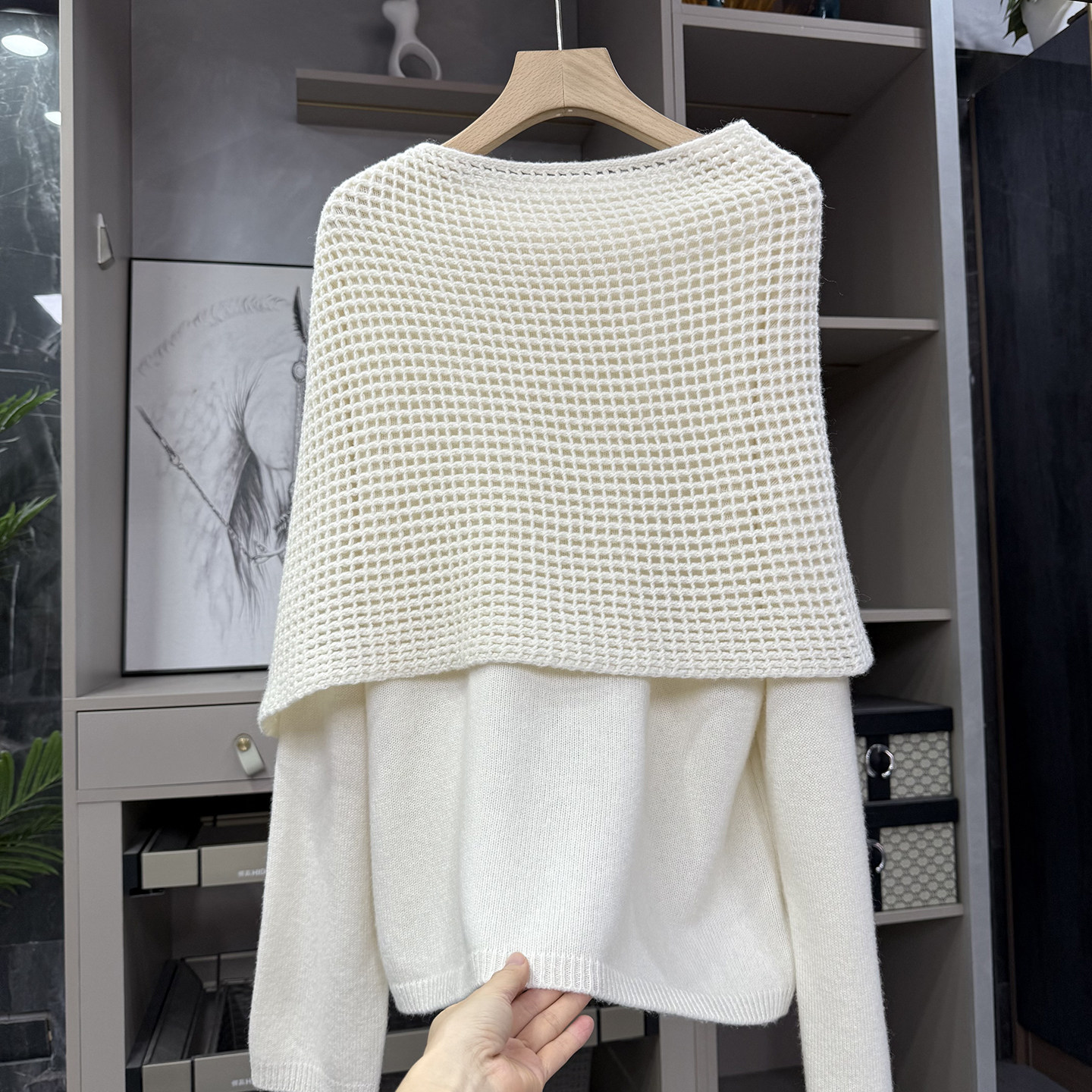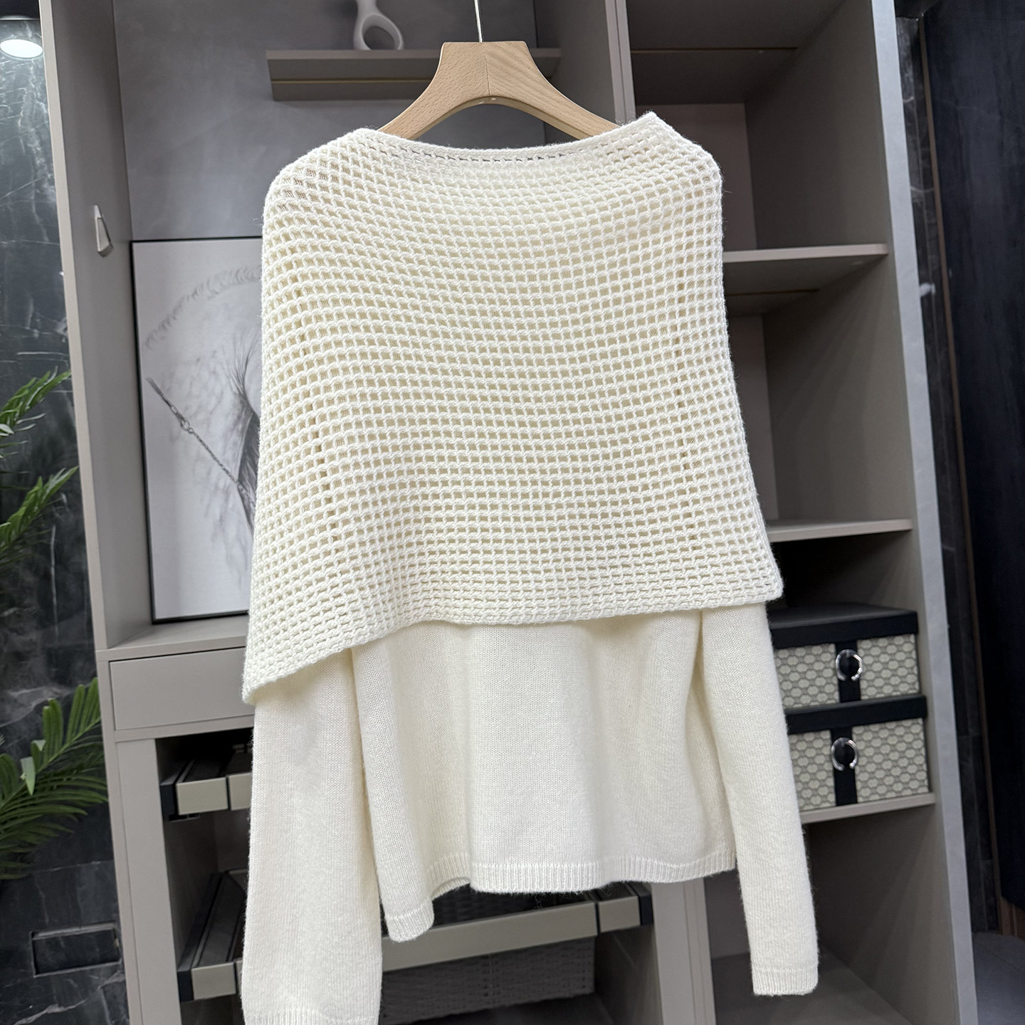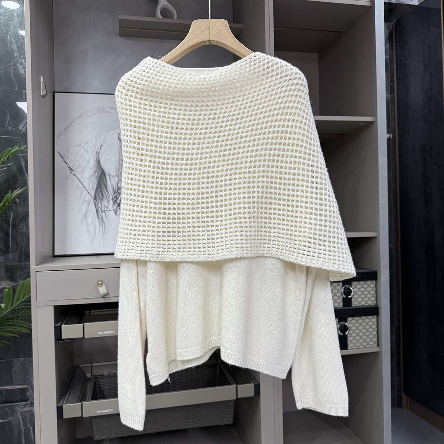 📚 yuan单尖货!两件套披肩镂空宽松羊毛圆领针织毛衣女 252271~ZY