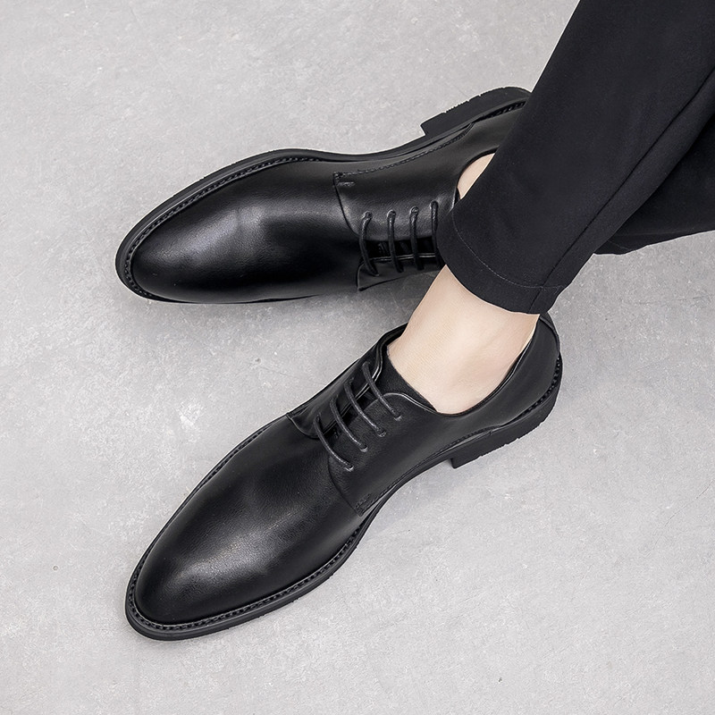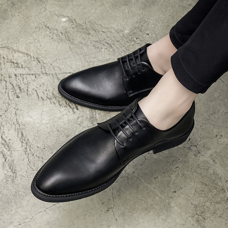 📚 冬季男士商务休闲小皮鞋男韩版尖头潮流英伦加绒软皮正装上班鞋子