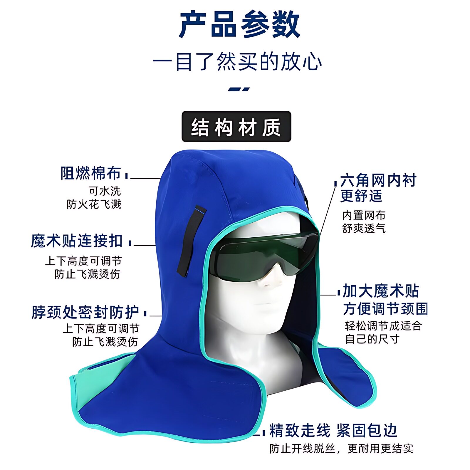 📚 电焊工焊帽披肩风帽阻燃防烫尘焊渣飞溅防护头套耐磨透气劳保帽子