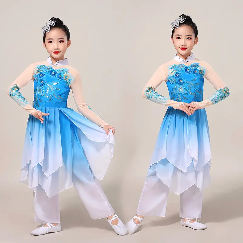 📚 儿童茉莉花典舞演出服女童秧歌服飘逸扇子伞舞民族舞蹈服新款现货