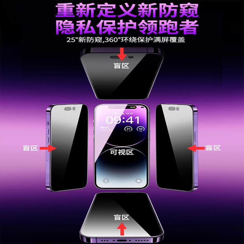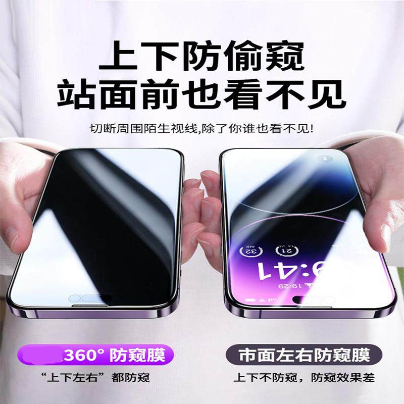 📚 精菲适用于[360度防窥膜]苹果14防窥钢化膜iPhone13ProMax防偷窥12Pro11全屏X新款XR窥屏xsmax挡Plus防尘por