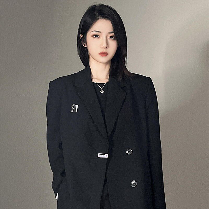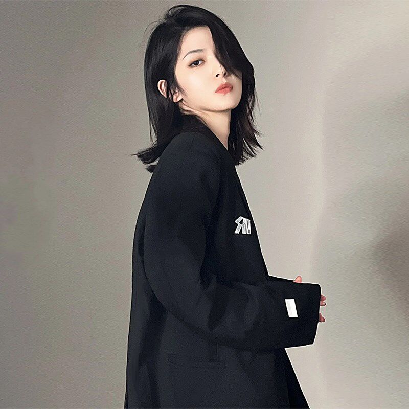📚 高级设计感黑色西服上衣小个子春秋新款宽松显瘦气质休闲西装外套