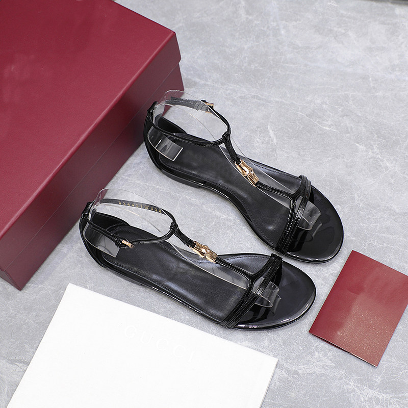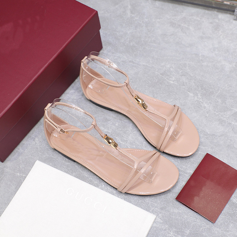 📚 G家Bamboo高板!时髦圆头T字带露趾百搭平底凉鞋女2025新款潮真皮
