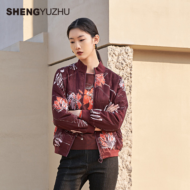 📚 声雨竹官方旗舰店秋冬新款女士外套商场同款手绘印花棉服高级时尚