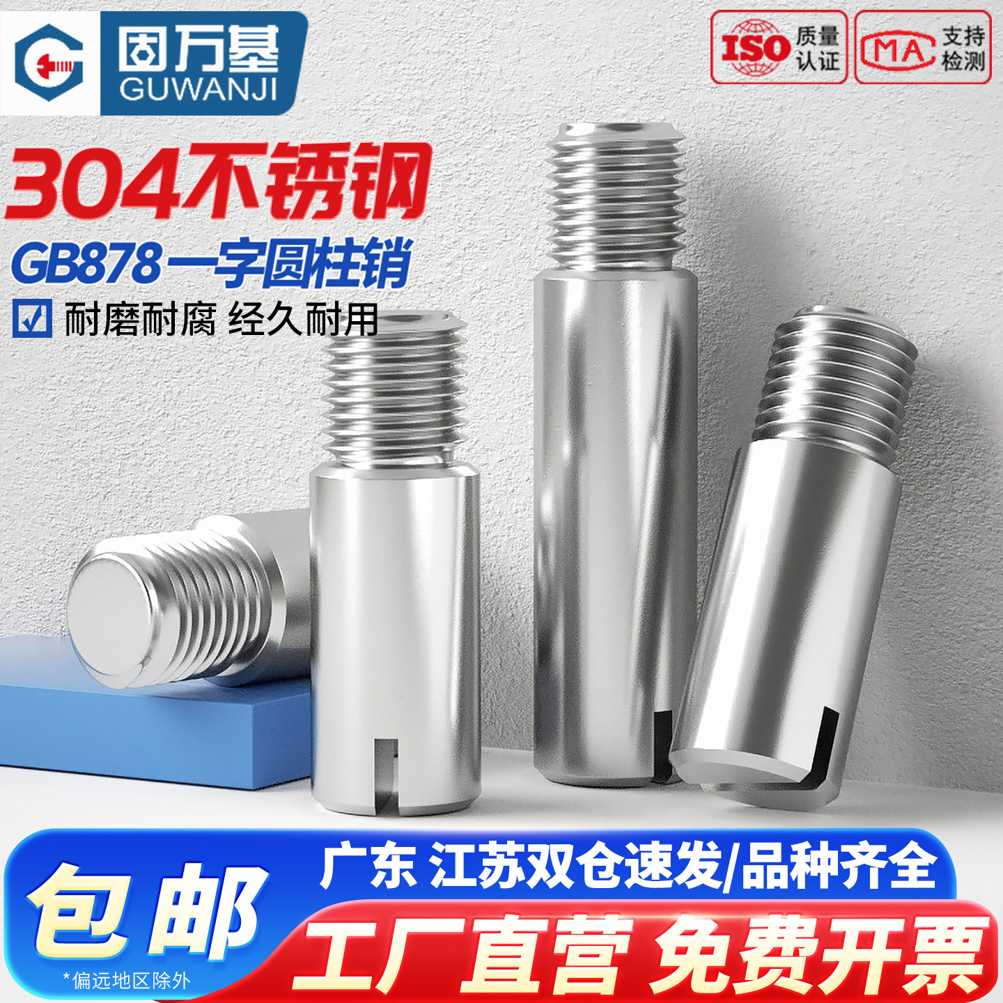 📚 304不锈钢GB878外螺纹圆柱销一字槽定位销轴M2M2.5M3M4M5M6M8M10