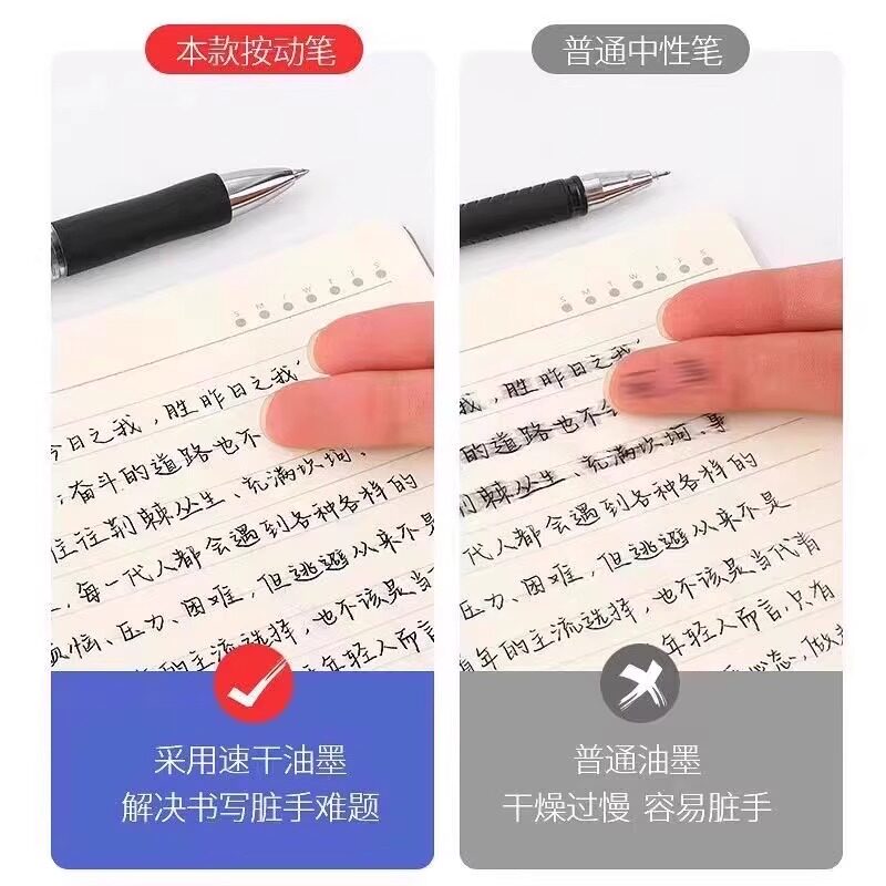 📚 按动中性笔黑笔速干顺滑大容量黑色按动笔0.5mm子弹头碳素笔水性笔圆珠笔按压式水笔办公用签字笔学生专用
