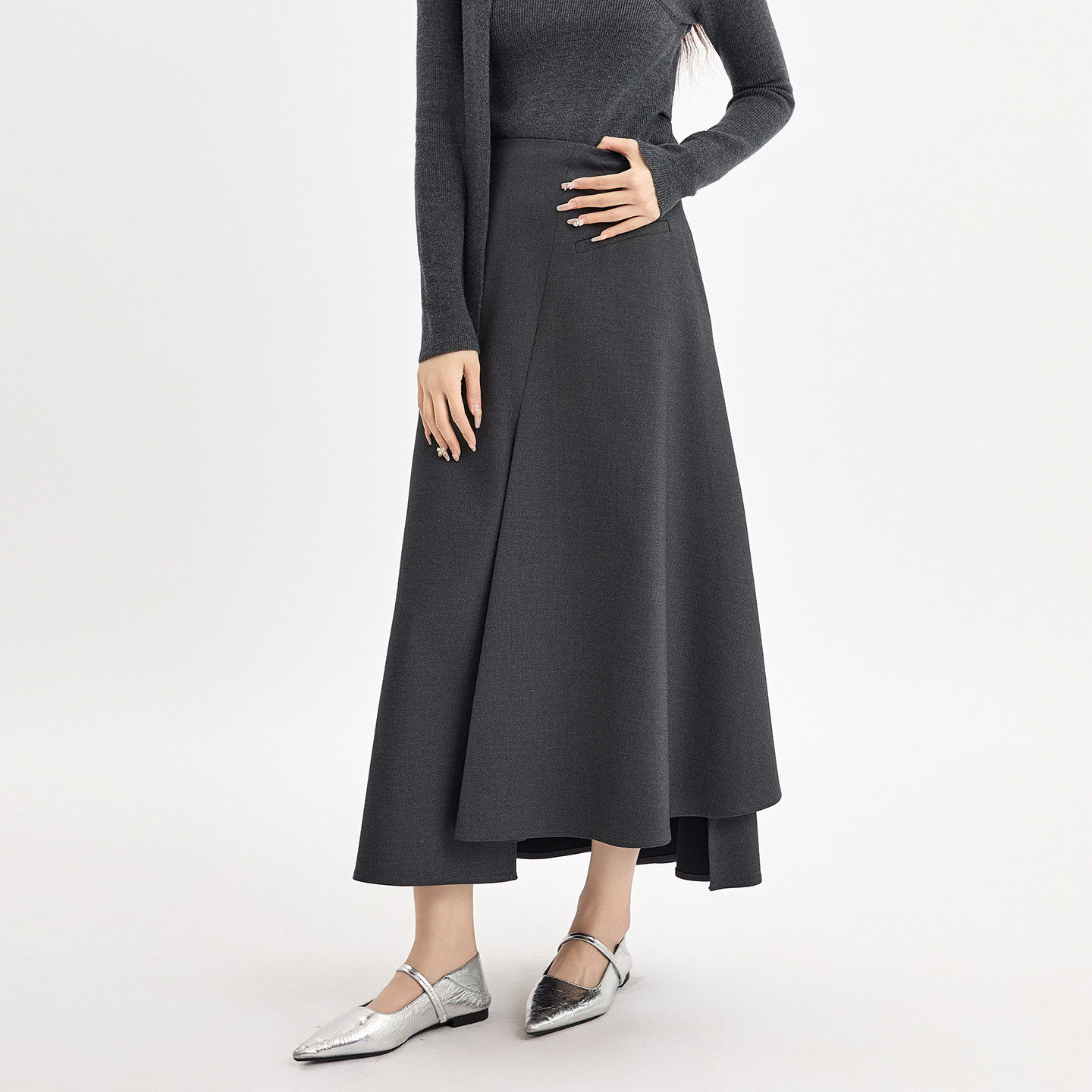 📚 法柚2026春季半身裙不规则剪裁拼接超好看高腰大摆伞裙