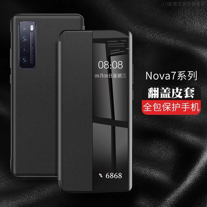 📚 适用于华为nova7手机壳翻盖式nova7se手机套智能视窗nova7pro皮套全包防摔新款素皮por高档男款网红女6se外壳