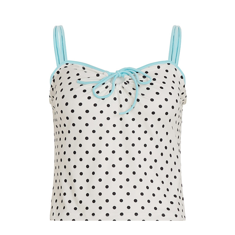📚 WEEKEEP 少女风撞色波点镂空系带吊带背心辣妹性感胸型露背上衣