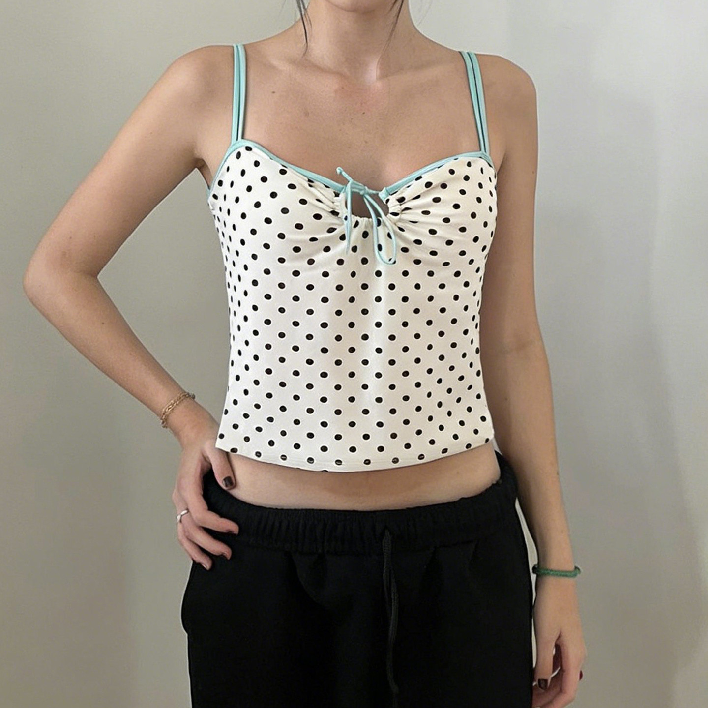 WEEKEEP 少女风撞色波点镂空系带吊带背心辣妹性感胸型露背上衣