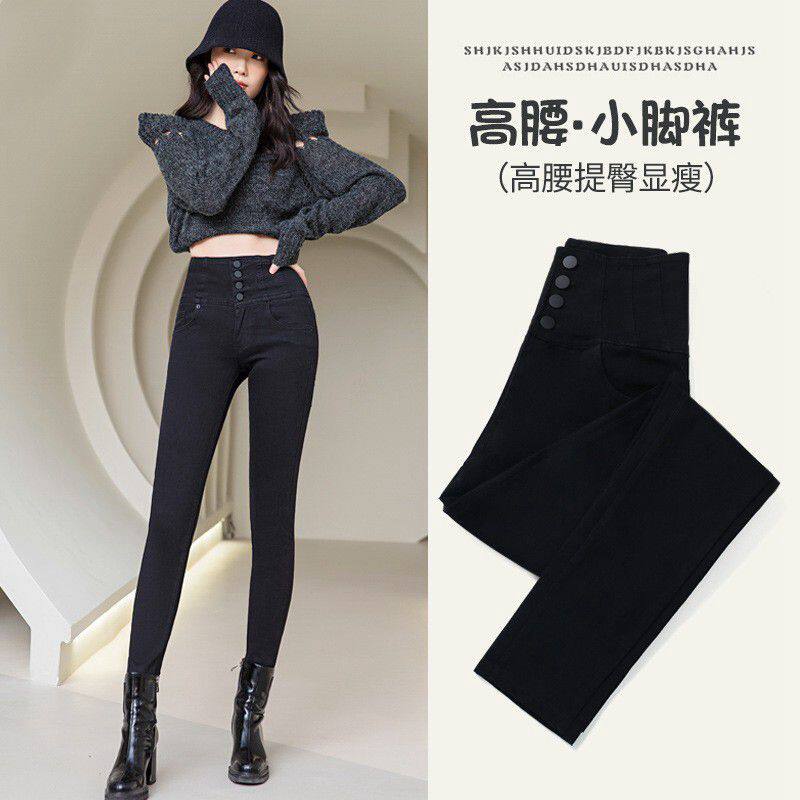 📚 大码黑色牛仔裤女春秋季胖mm200斤高腰显瘦小脚裤加绒紧身铅笔裤