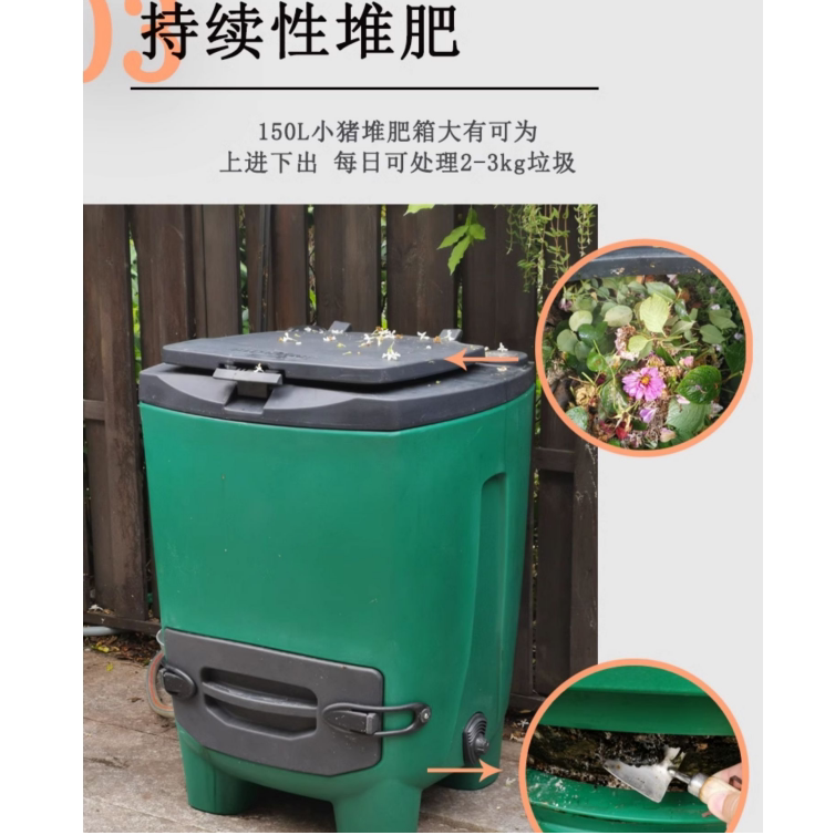 📚 碧奥兰小猪堆肥桶150L厨余园艺垃圾堆肥发酵箱无废校园堆肥垃圾桶