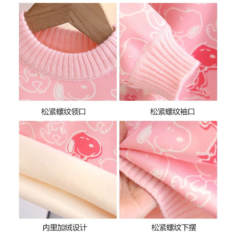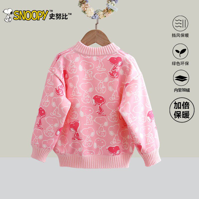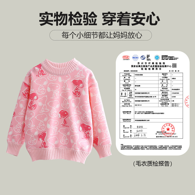 📚 史努比女童秋冬新款针织打底衫儿童套头加绒加厚毛衣女孩保暖上衣