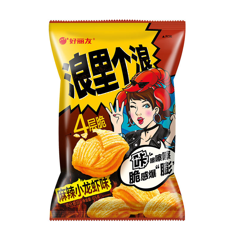 📚 好丽友浪里个浪麻辣小龙虾味65g四层脆玉米片膨化食品零食包邮