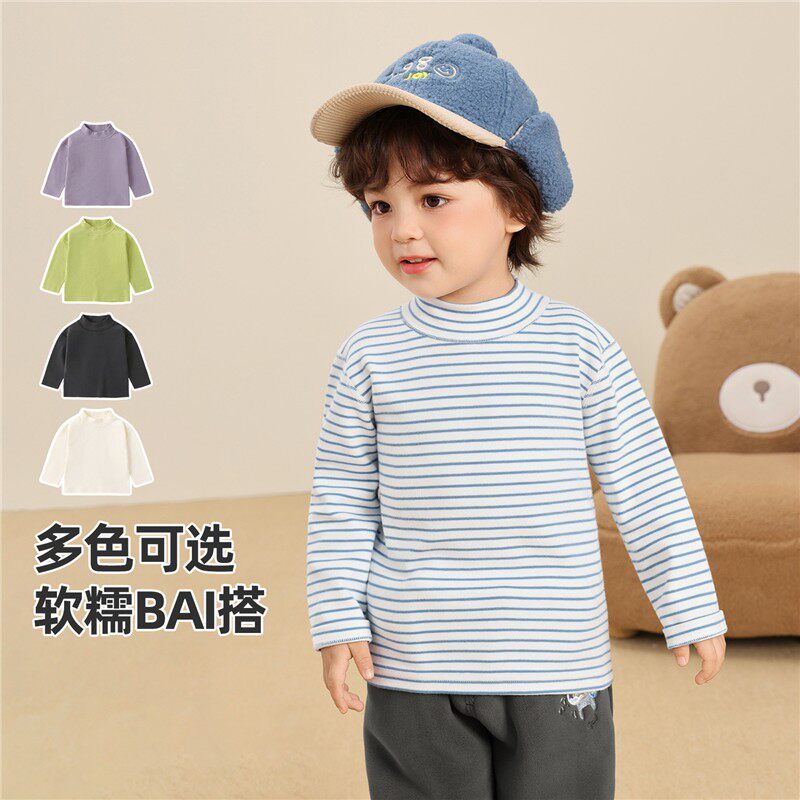 📚 【发热波波绒】春秋冬季儿童半高领打底衫长袖t恤宝宝保暖上衣