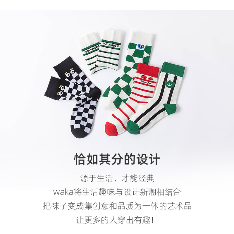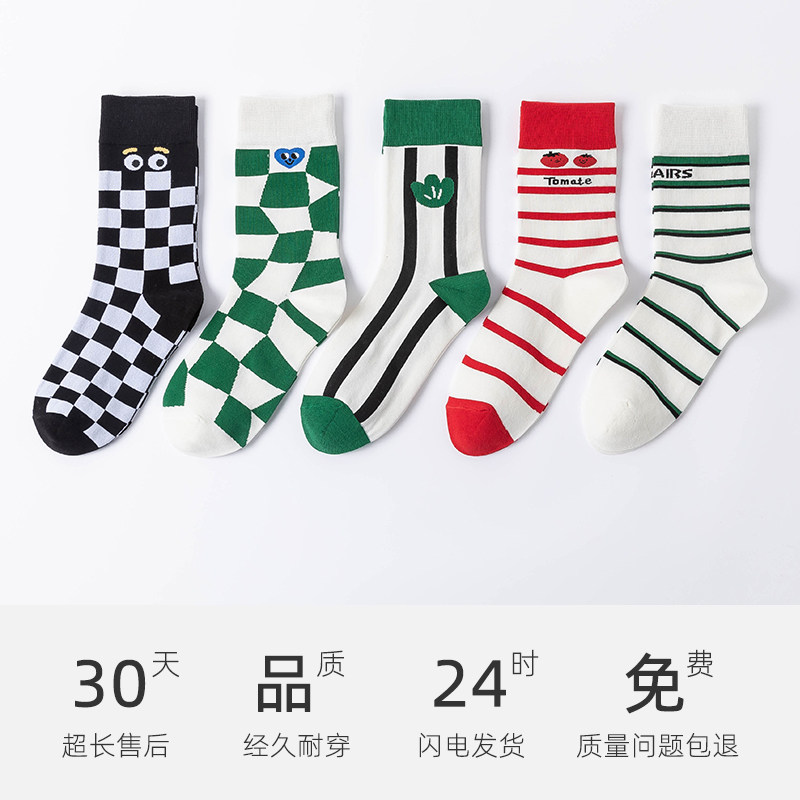 📚 袜咔袜咔【5双】袜子女网红中筒袜潮流袜子男士日系条纹透气短袜