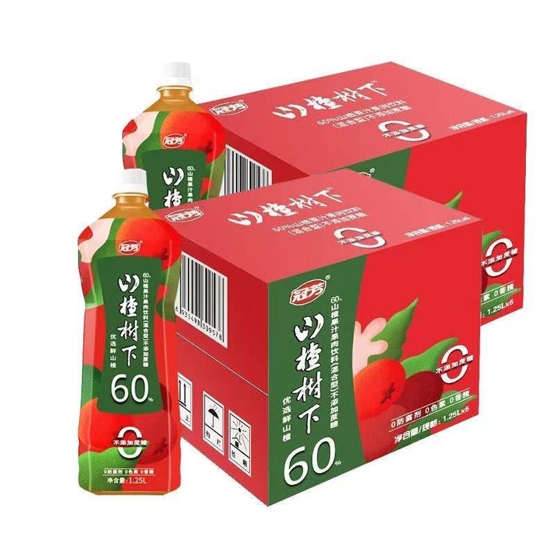 📚 速发冠芳山楂树下饮料整箱350ml*15/6瓶 果汁果肉营养开胃饮品 包