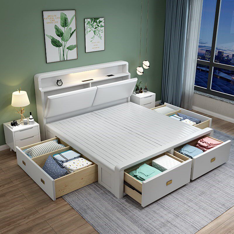 📚 新款全实木床1.8米1.5白色储物高箱1.2/.135m儿童抽屉简约现代气
