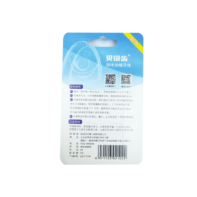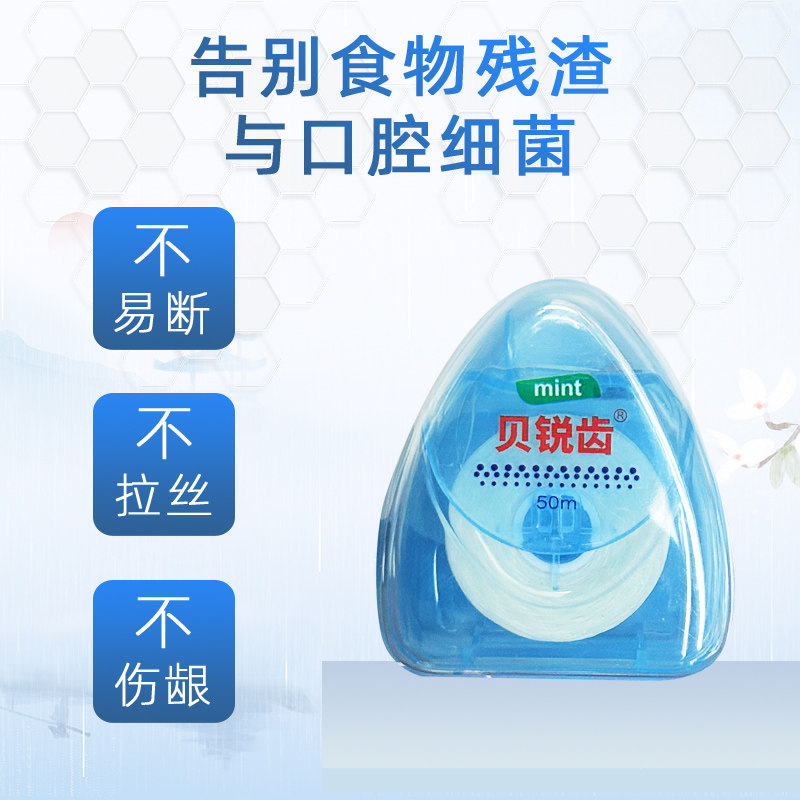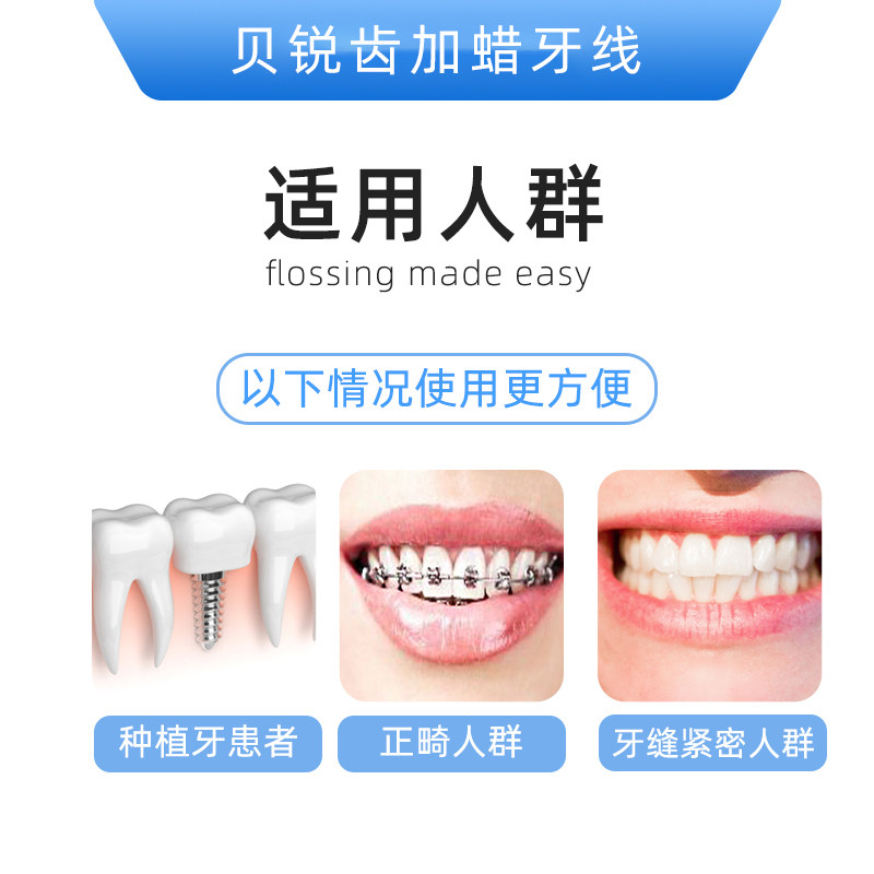 📚 贝锐齿加蜡牙线50m 超细微蜡薄荷牙渍清新口气剔牙缝剔牙线