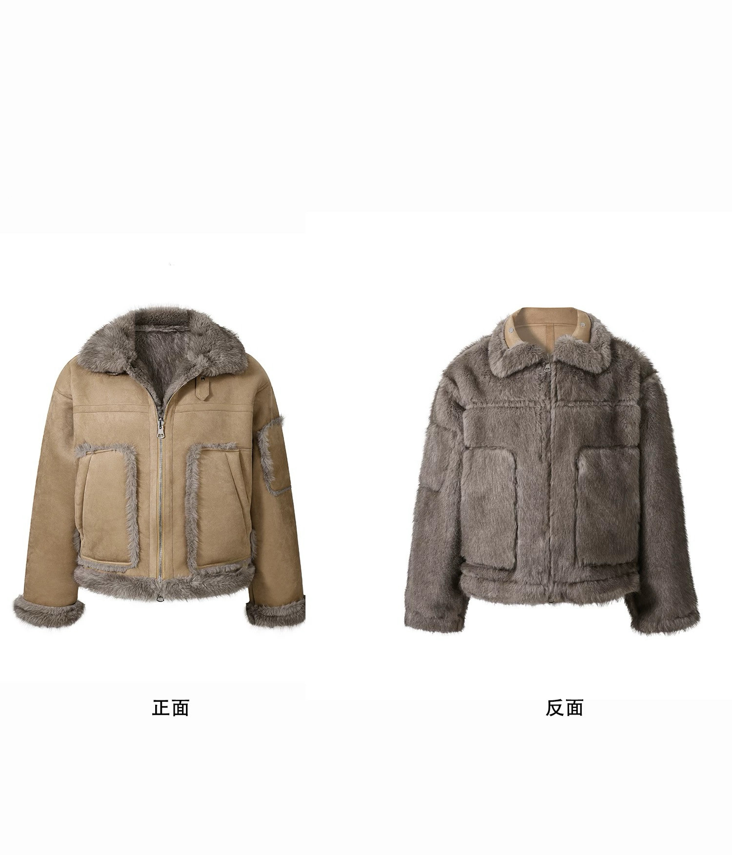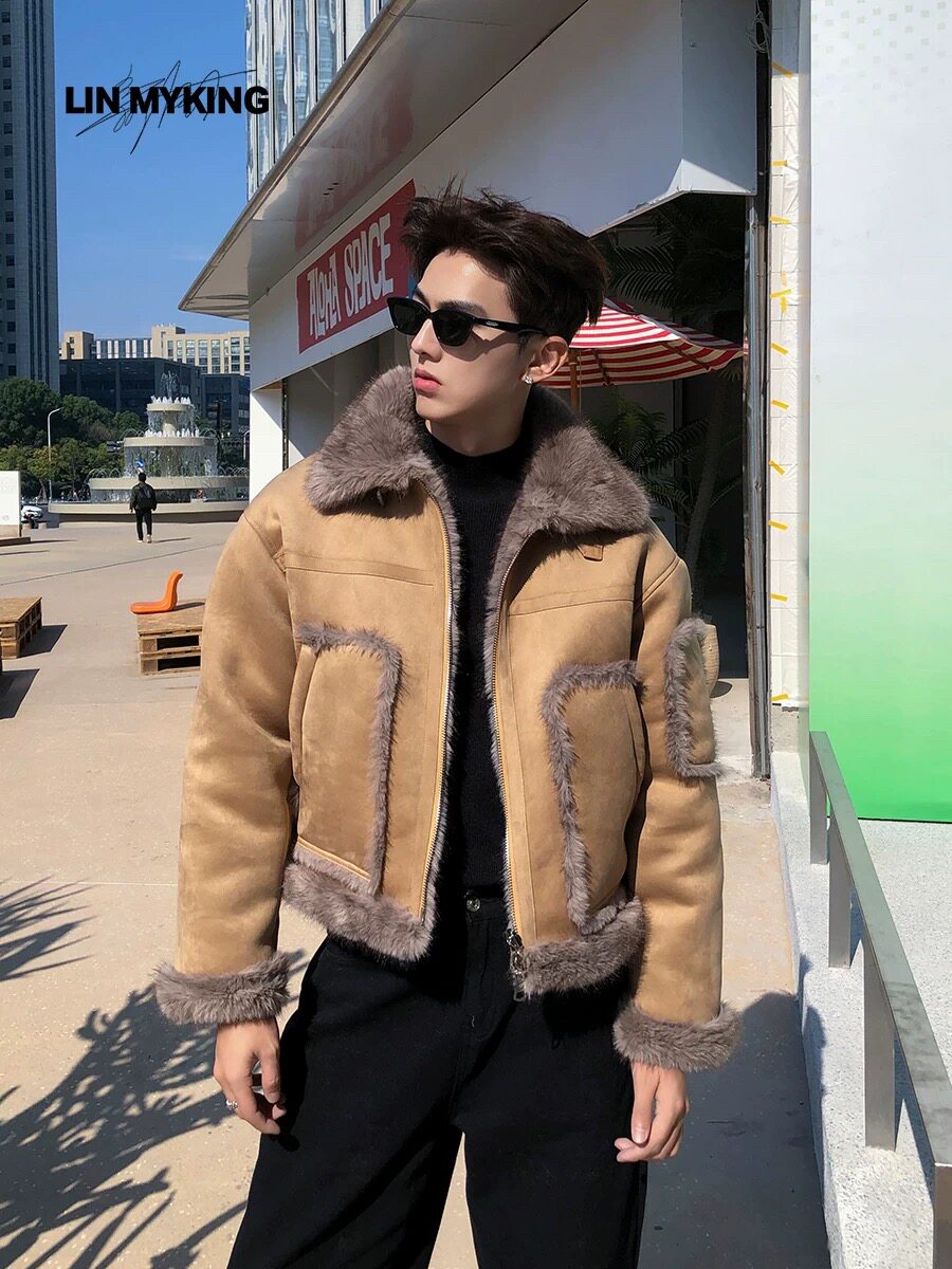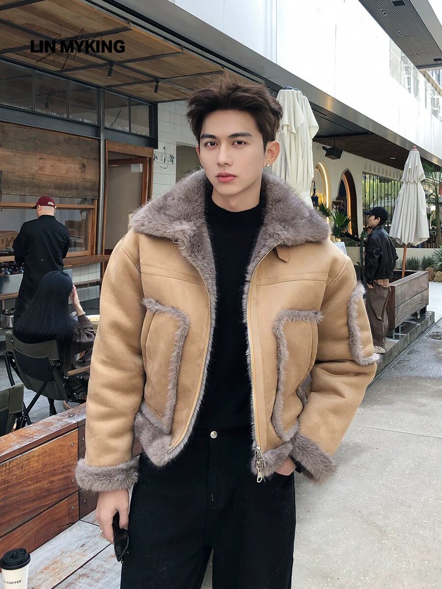 📚 美式复古cleanfit皮毛一体羊羔毛外套男女短款夹克厚麂皮加绒外套
