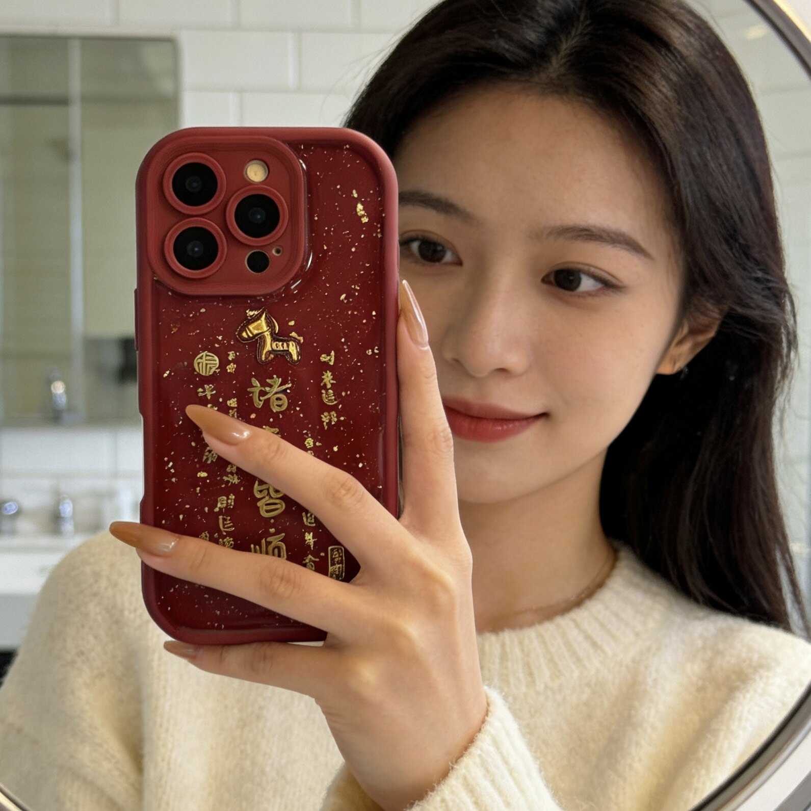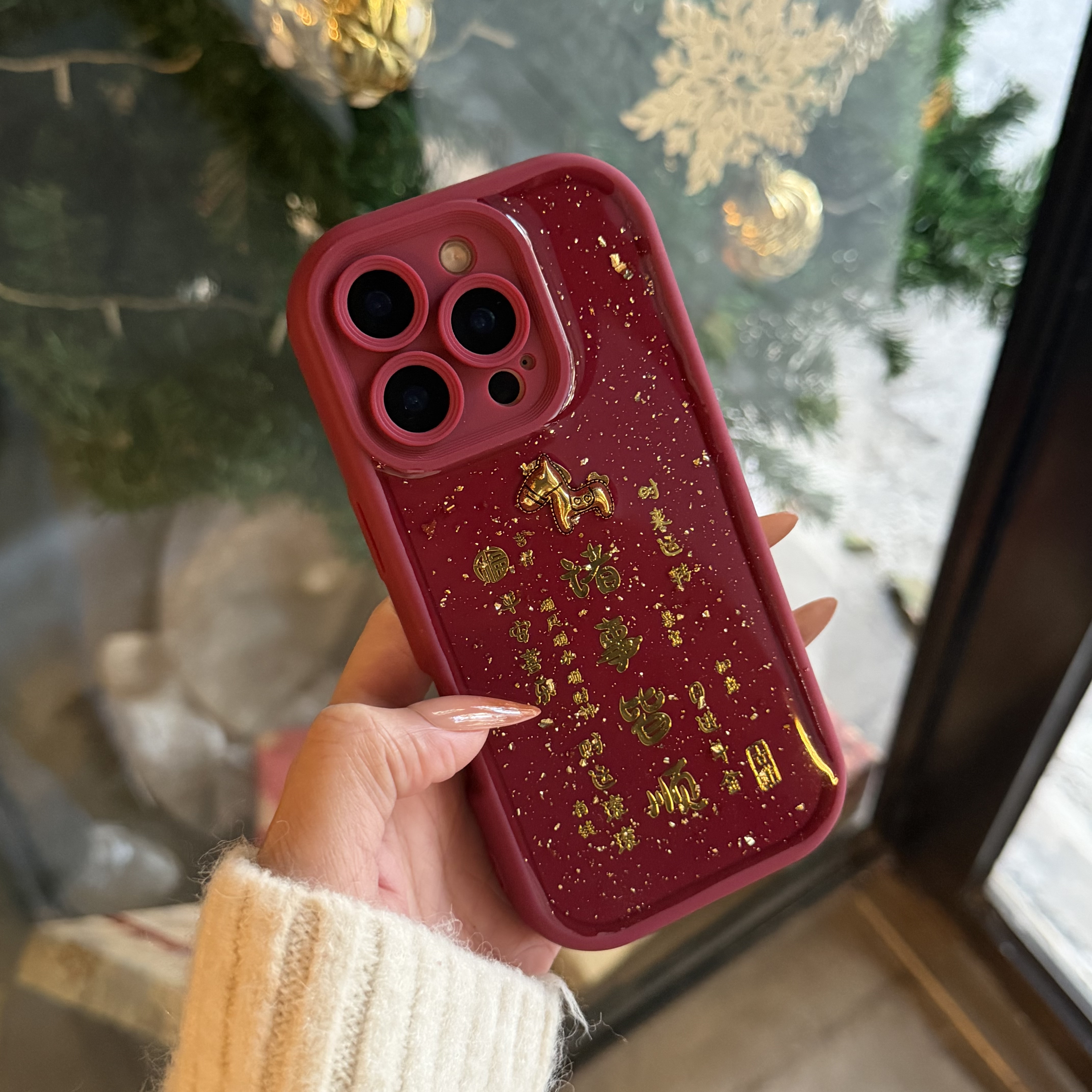📚 新年红色烫金文字小马适用oppofindx9 8 7pro手机壳A6 A5pro防摔K12 k11 k13软壳A96 A72女A57 A58x保护套女