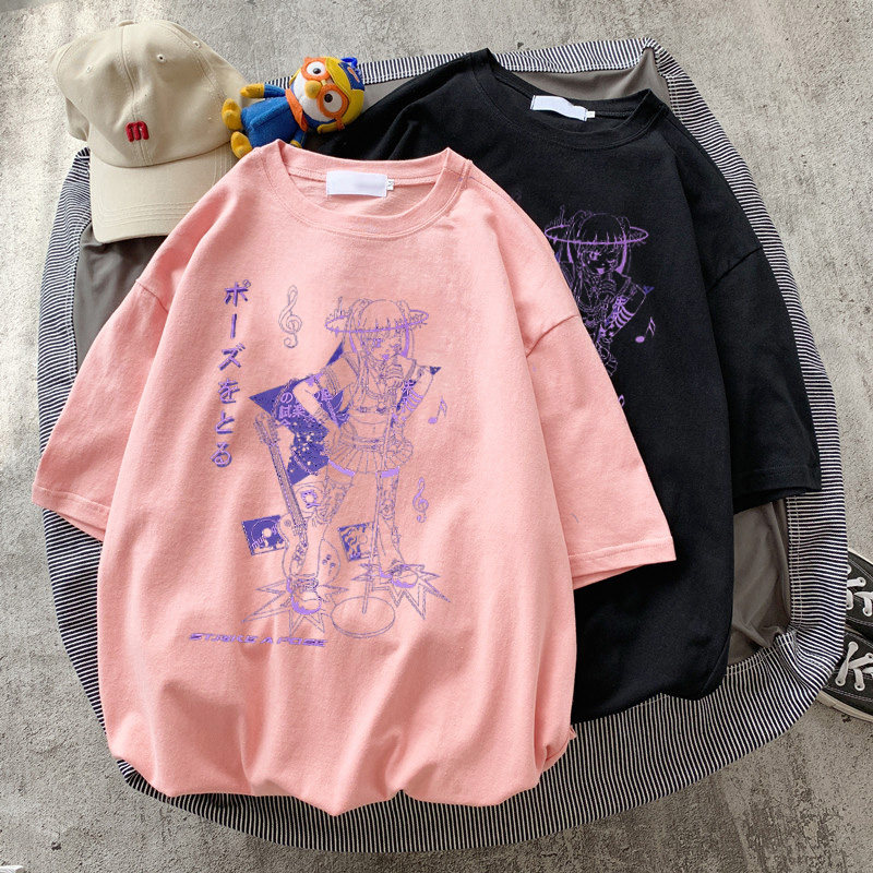 📚 速发Huku Mus girl Prit Bla Crop Wo T-shirt Goth c