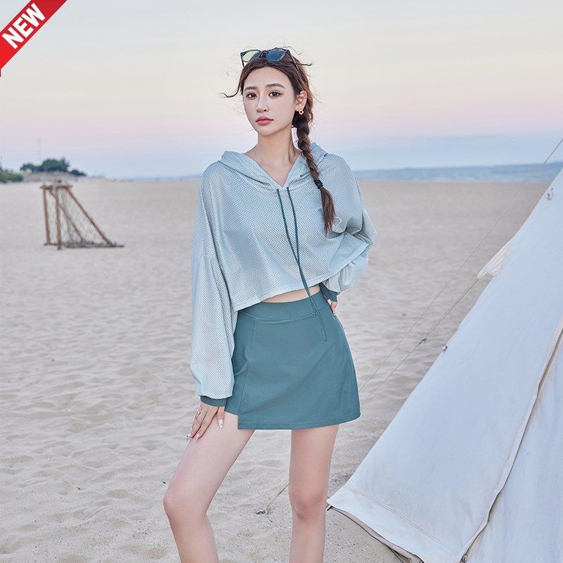 📚 游泳衣女三件套裙式学生保守聚拢分体显瘦遮肚可爱少女泡温泉度假