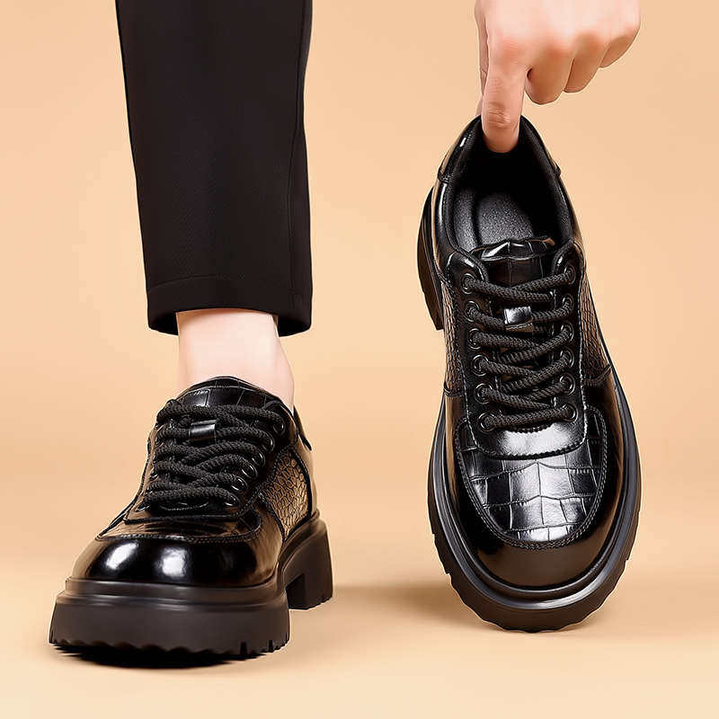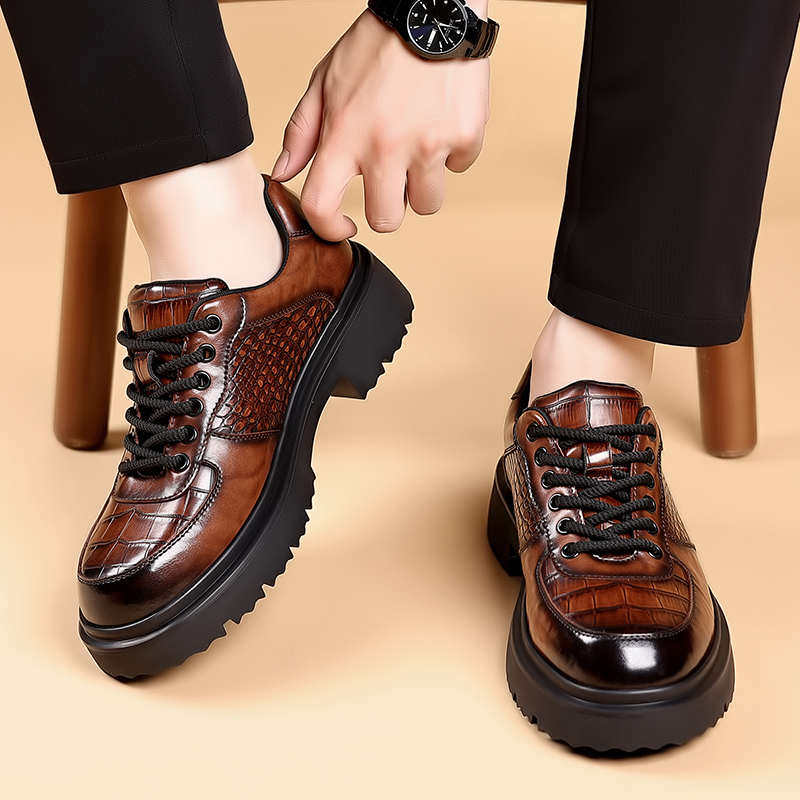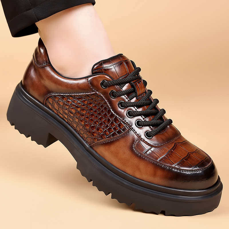 📚 厚底皮鞋男款大头2025春夏季新款爆款增高透气英伦商务休闲德比鞋
