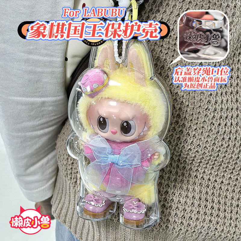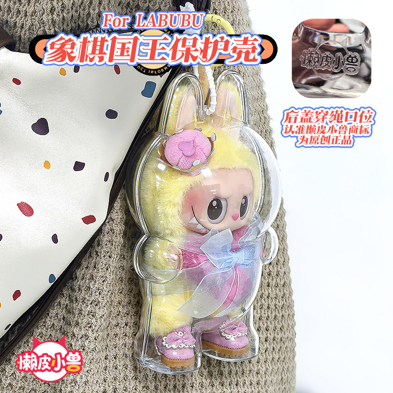 📚 LABUBU象棋大冒险情人节限定V1 2代马卡龙坐坐派对全透明保护壳罩